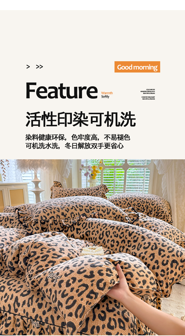 当前位置: 91家纺网 > 商品网购 > 床品套件 > 四件套 > 其它四件套 > 优家居 2025新品水洗棉夹棉床裙四件套韩版糯糯棉水洗皱皱纱床罩被套直播爆款 豹纹-咖