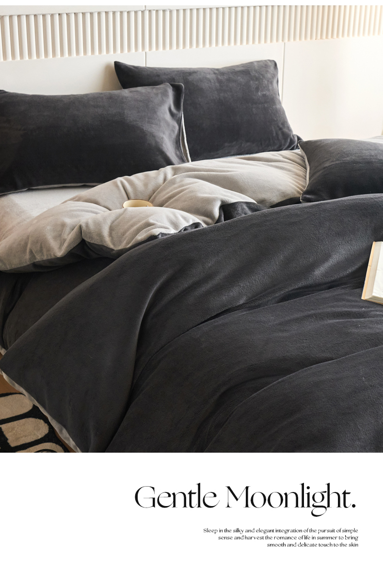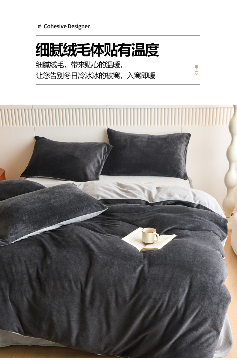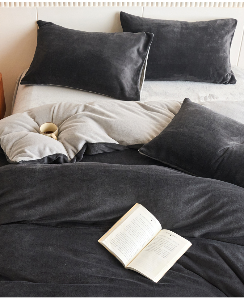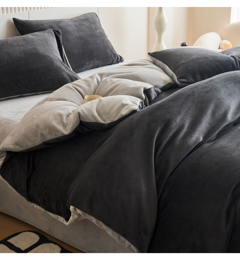 当前位置: 91家纺网 > 商品网购 > 床品套件 > 四件套 > 牛奶绒四件套 > 乐居家纺 2025新款200克重纯色单面绒牛奶绒四件套 深空黑+绅士灰