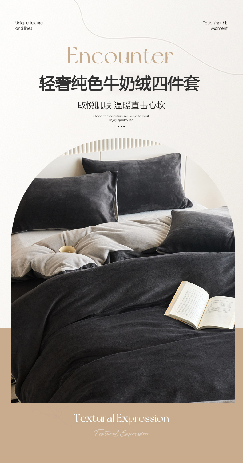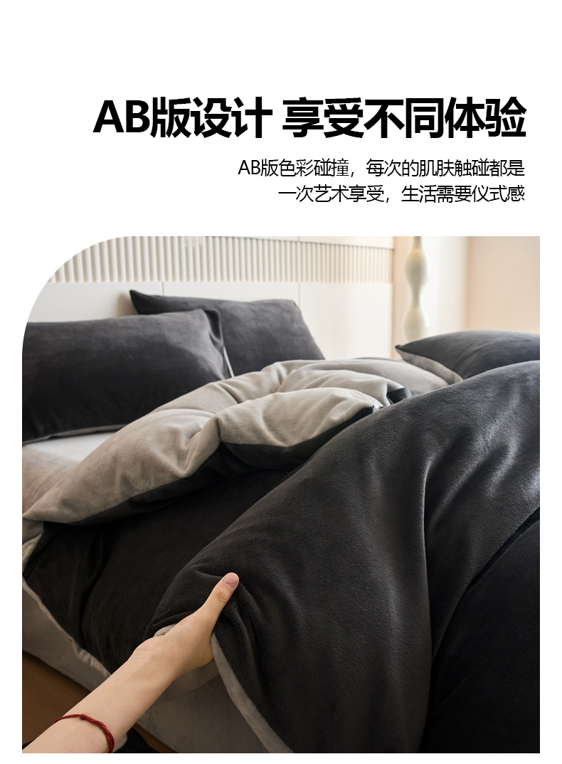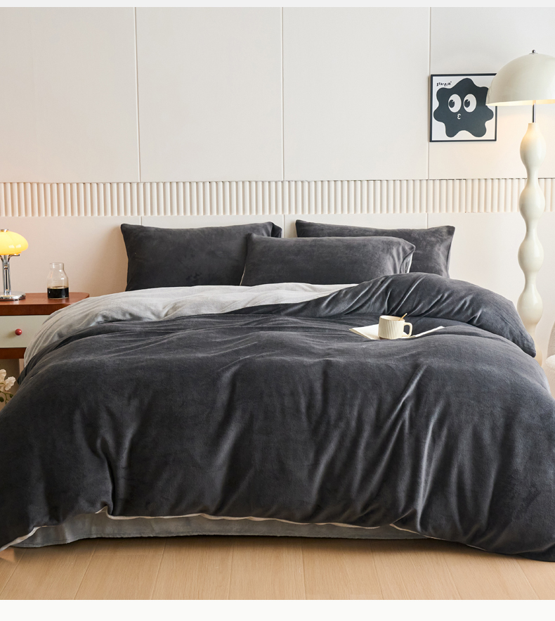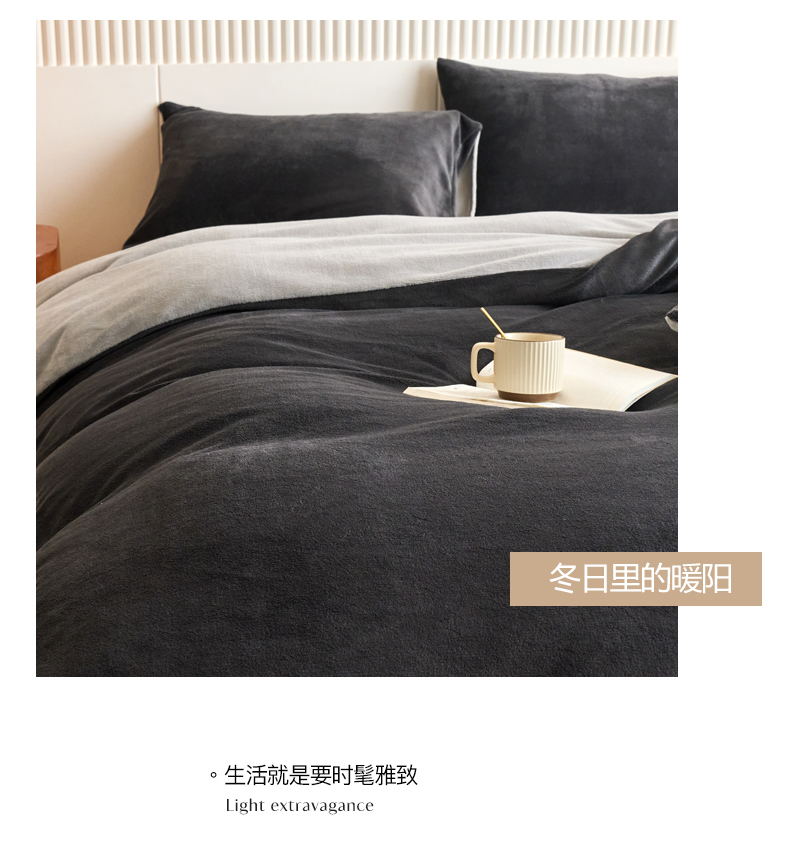 当前位置: 91家纺网 > 商品网购 > 床品套件 > 四件套 > 牛奶绒四件套 > 乐居家纺 2025新款200克重纯色单面绒牛奶绒四件套 深空黑+绅士灰