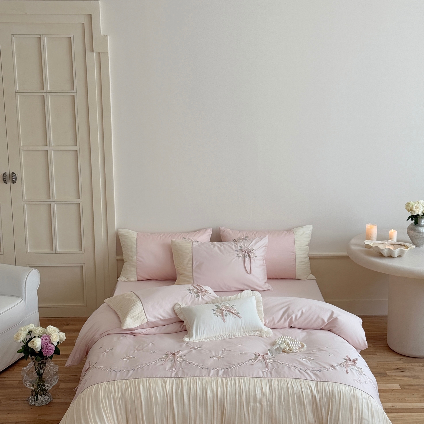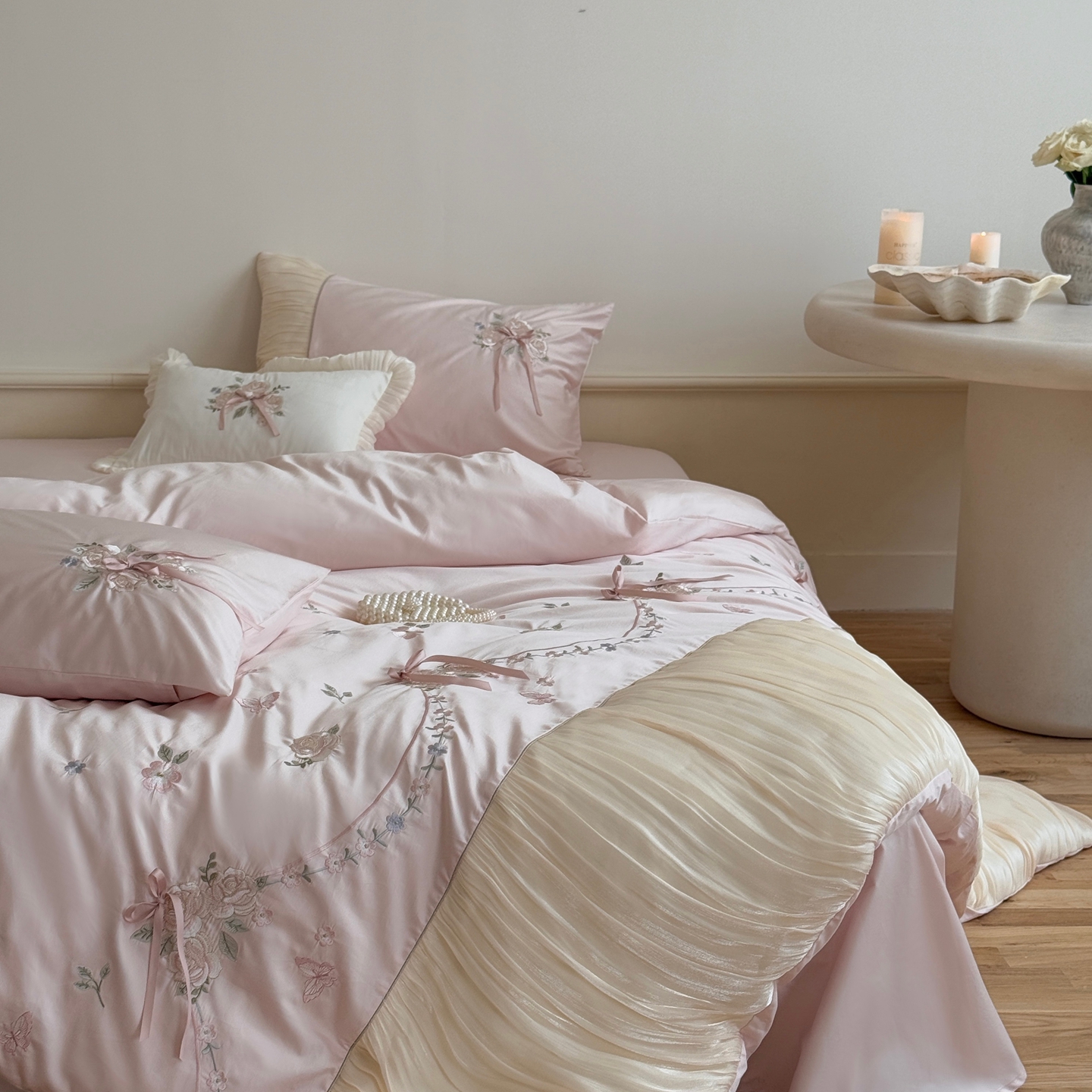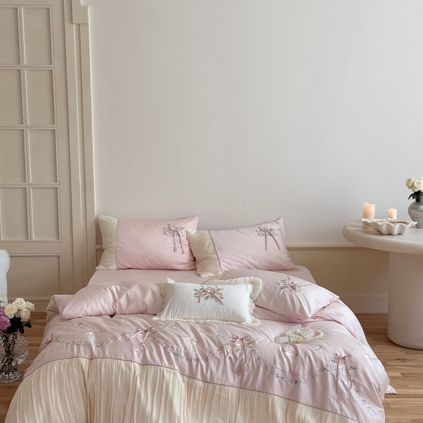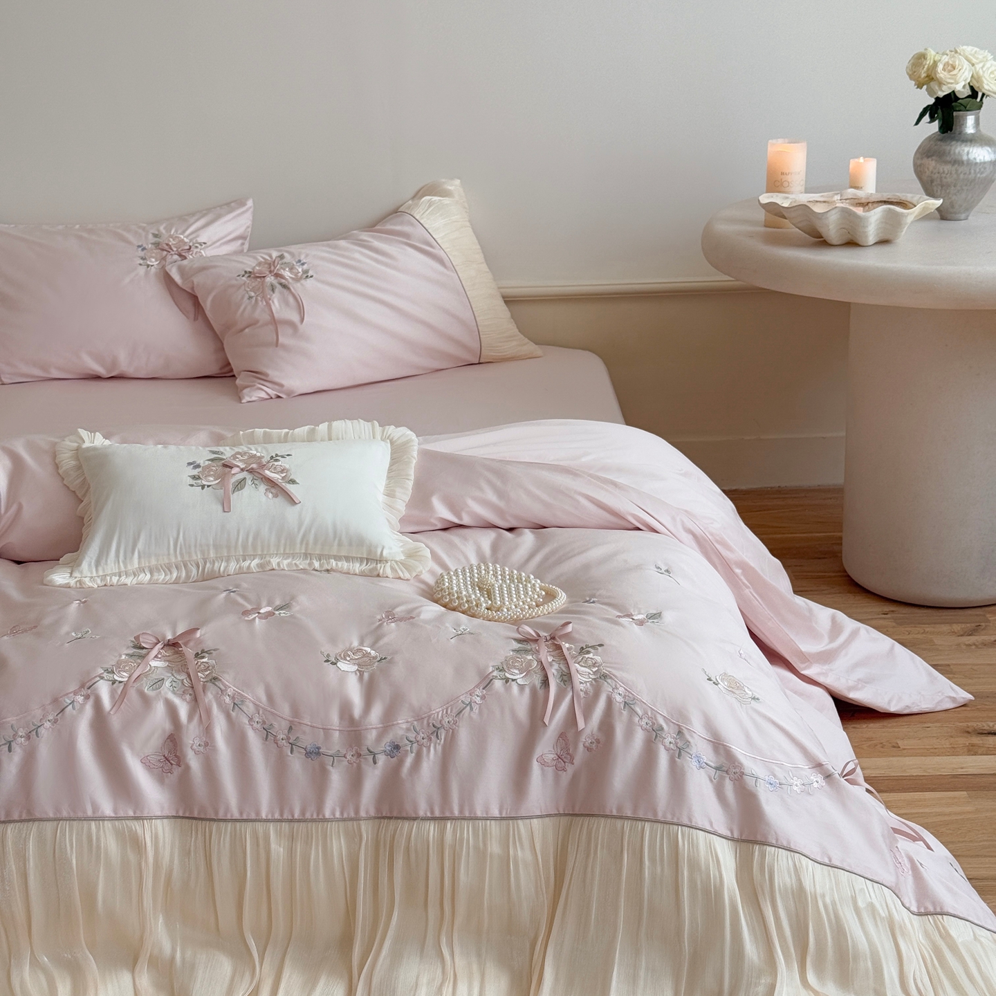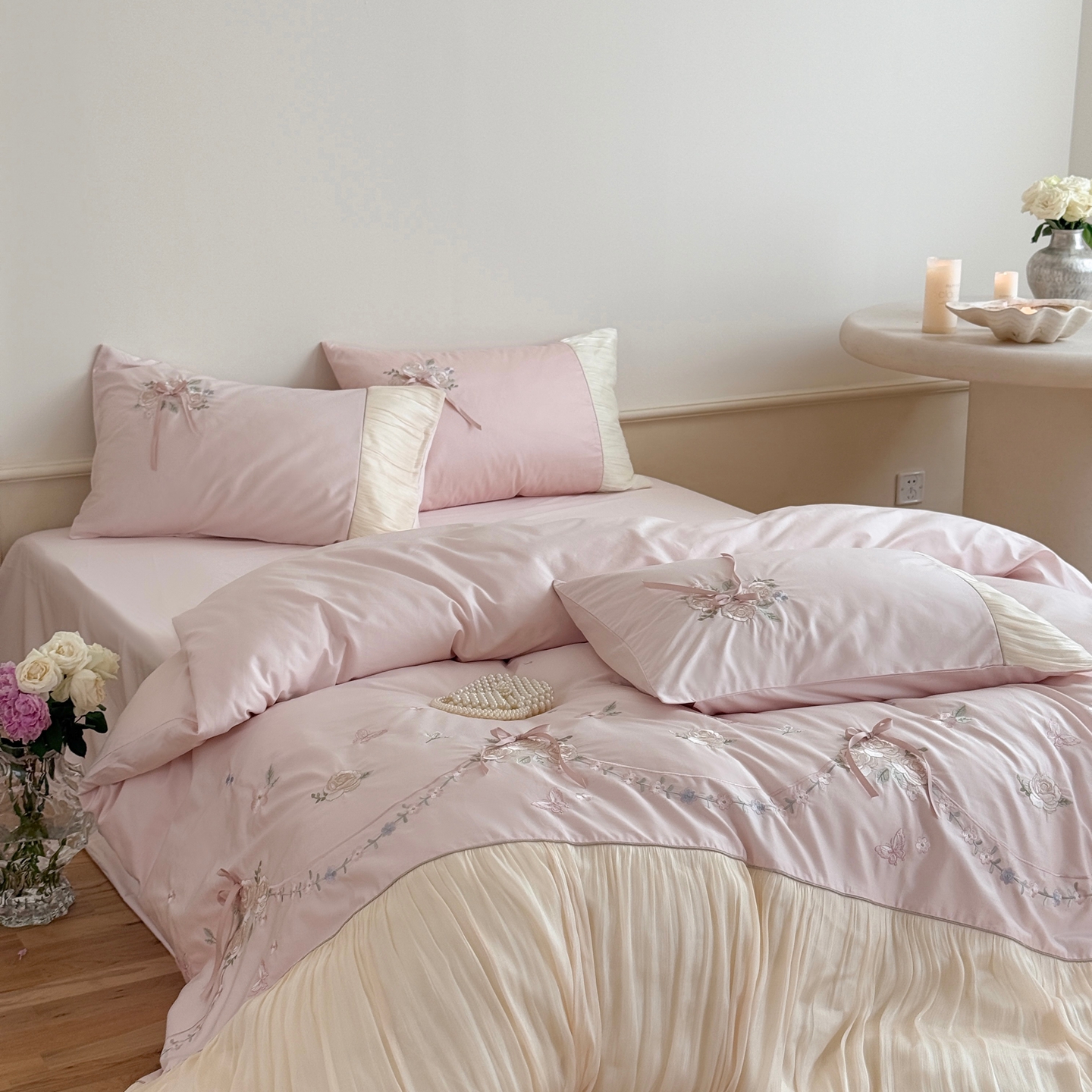 (总)嗨购 2022新款40支水洗棉刺绣花边四件套-阳光玫瑰,阳光玫瑰-粉,阳光玫瑰-黄,阳光玫瑰-蓝