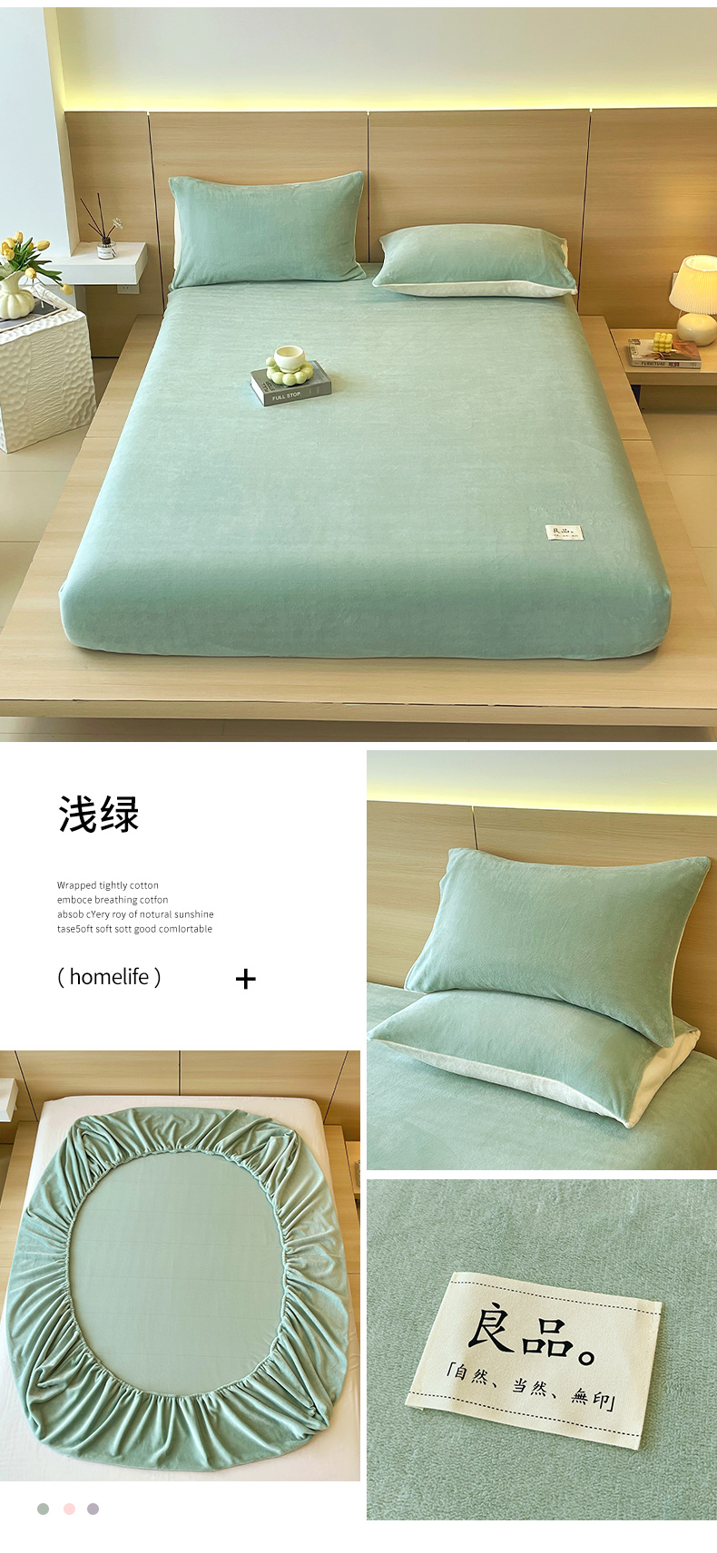 • 91家纺网 家纺一手货源 找家纺 小懒猪 2025年新款220克A类牛奶绒单床笠 浅绿
