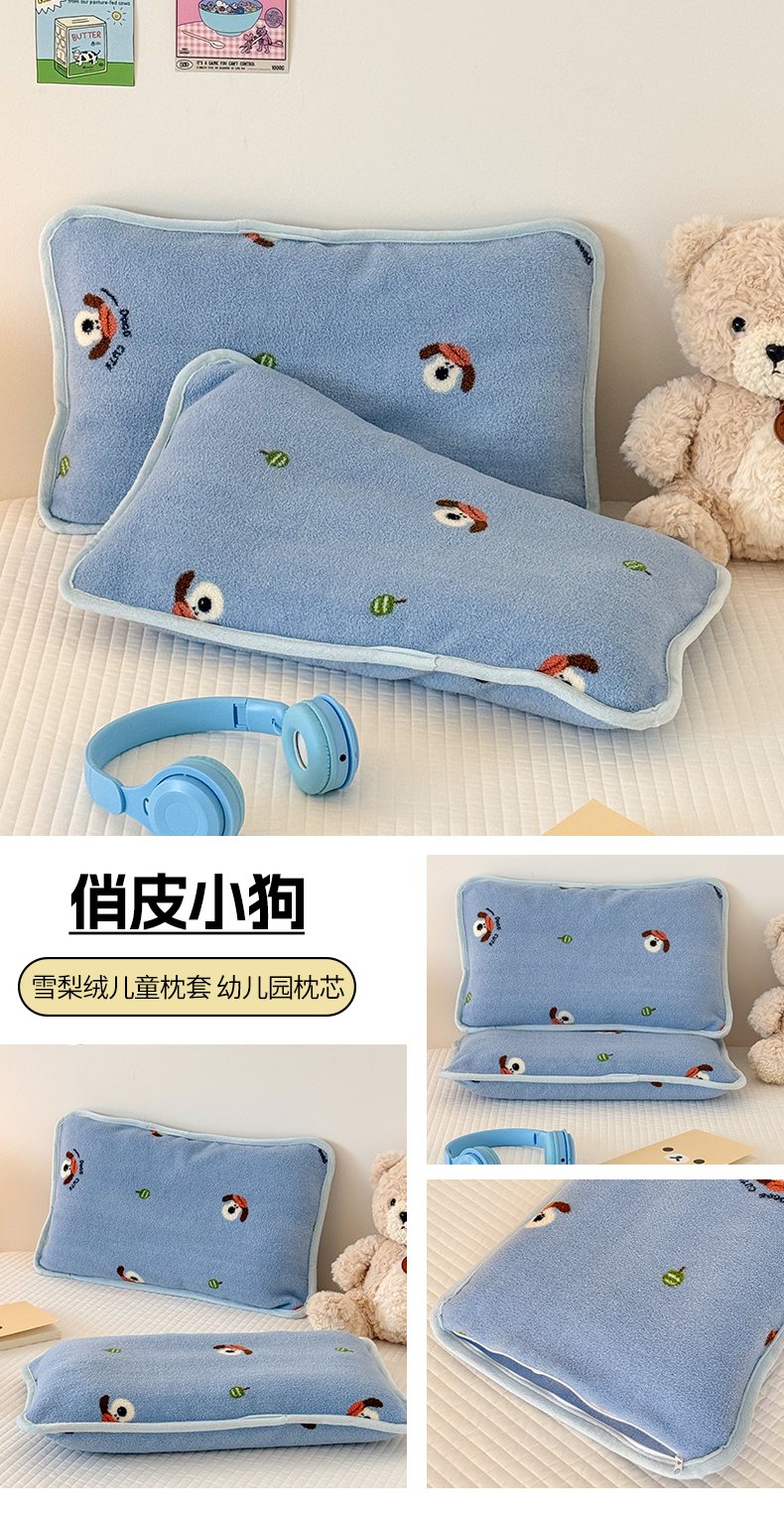 (总)嗨生活 2025新款雪梨绒枕套枕芯儿童枕套枕芯幼儿园枕套枕芯,波利狗,可爱熊猫,恐龙伙伴,俏皮小狗,甜心小兔,兔兔乐园,组合图