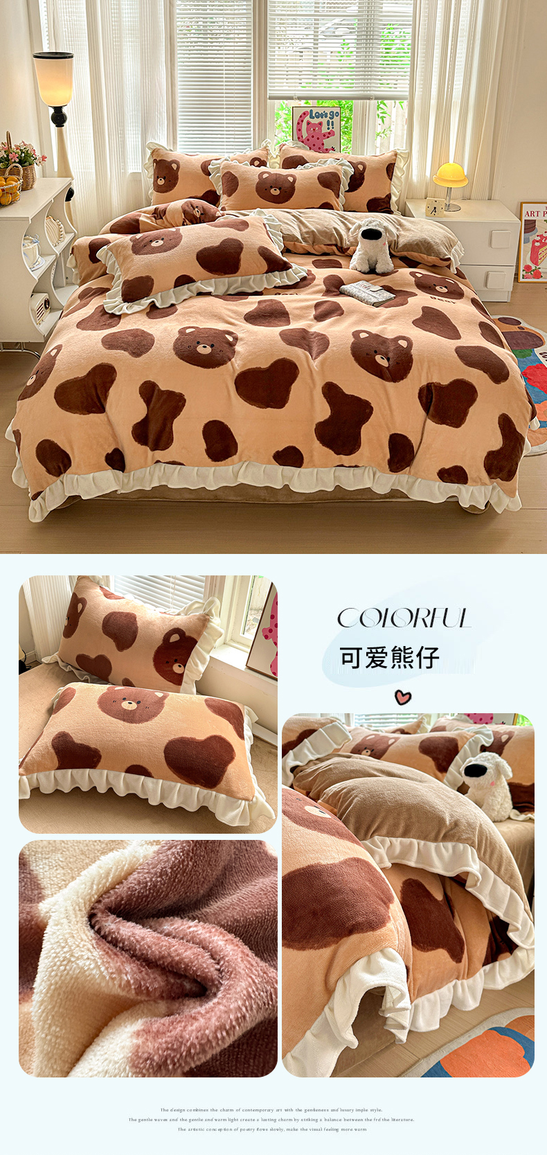 当前位置: 91家纺网 > 商品网购 > 床品套件 > 四件套 > 牛奶绒四件套 > N先生+V 13814689556 发大图/买家秀 2025新款韩式博主风花边款ins卡通牛奶绒四件套 可爱熊仔