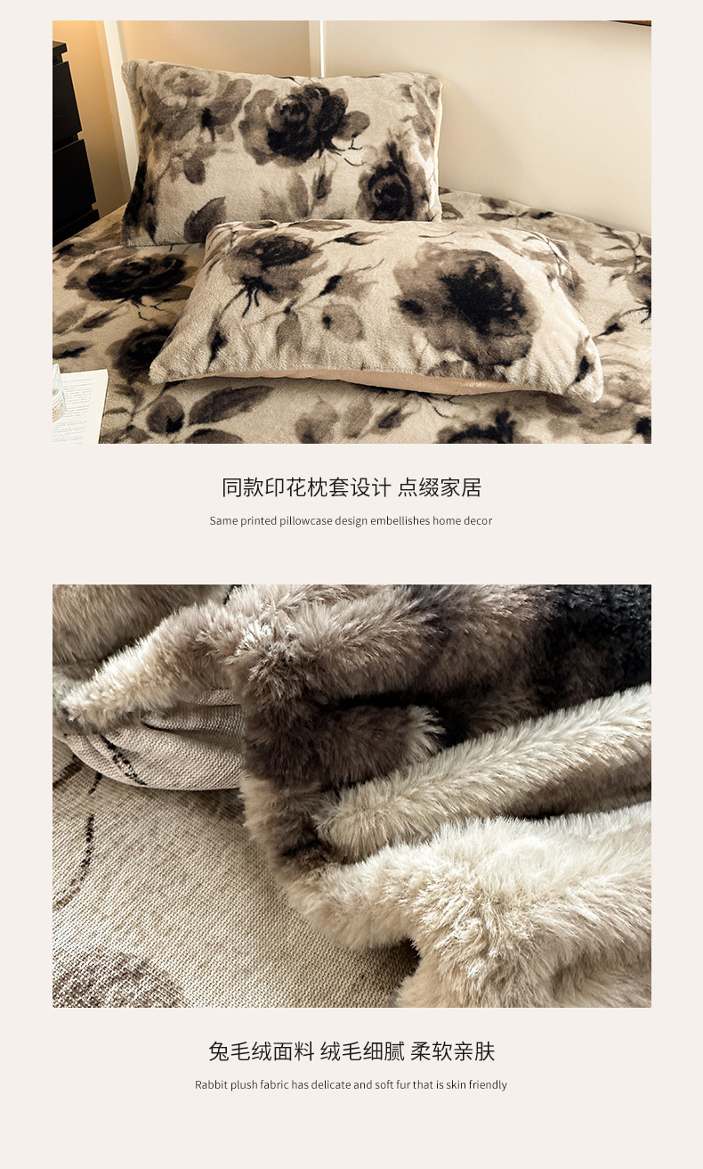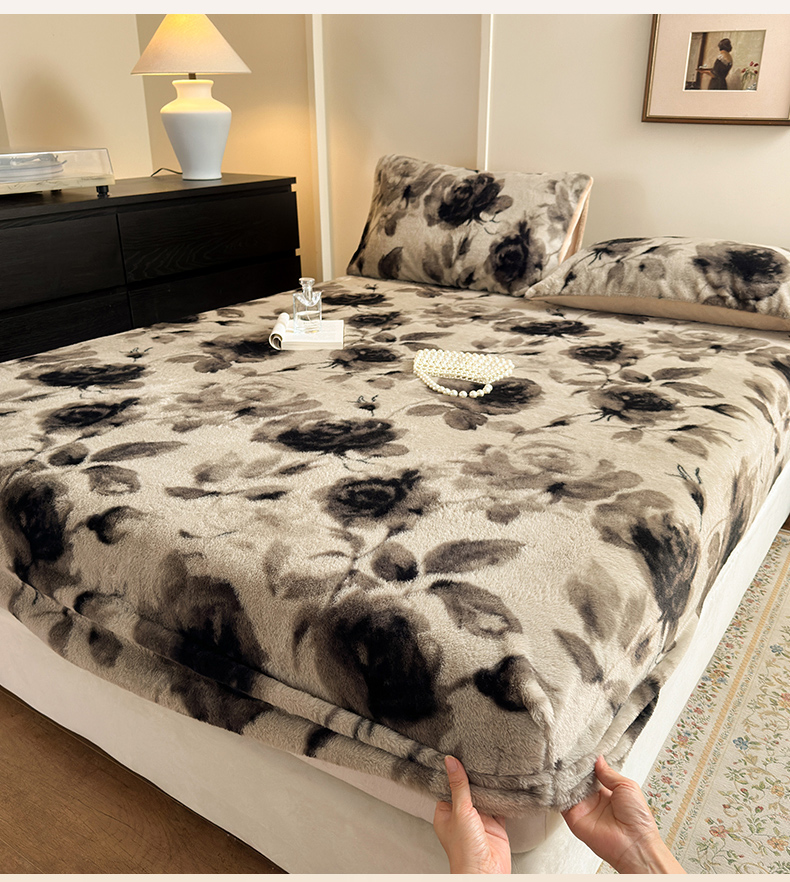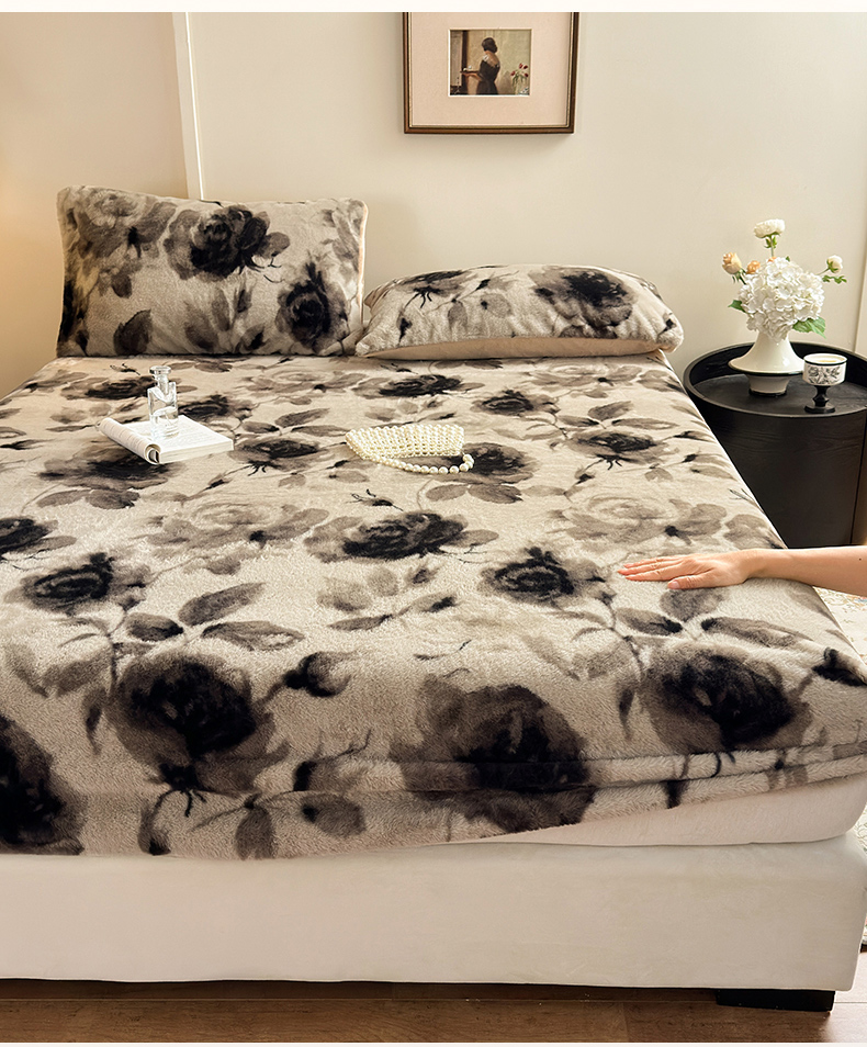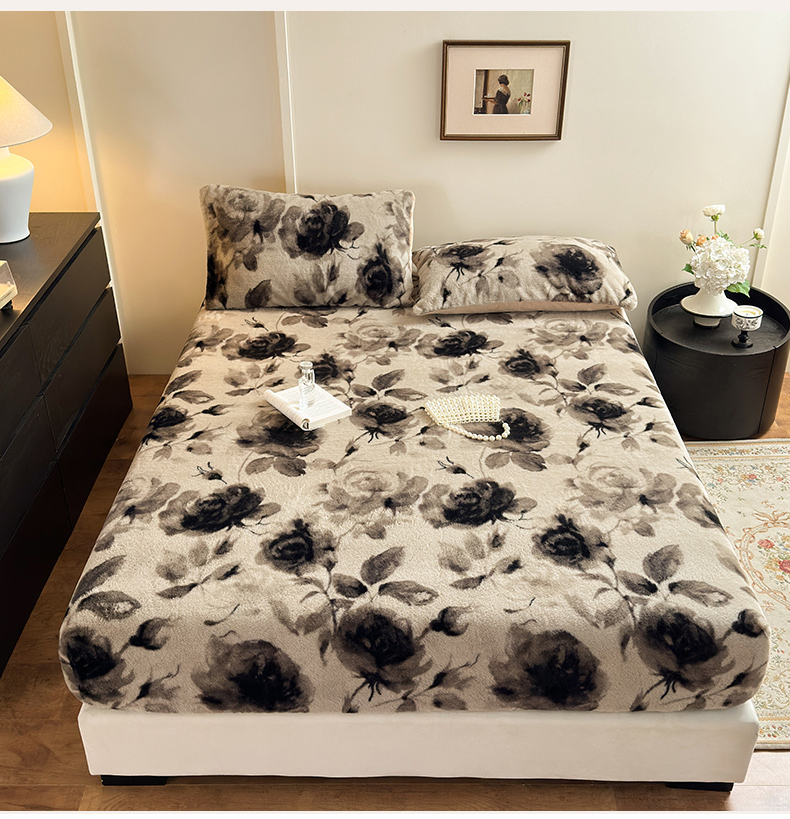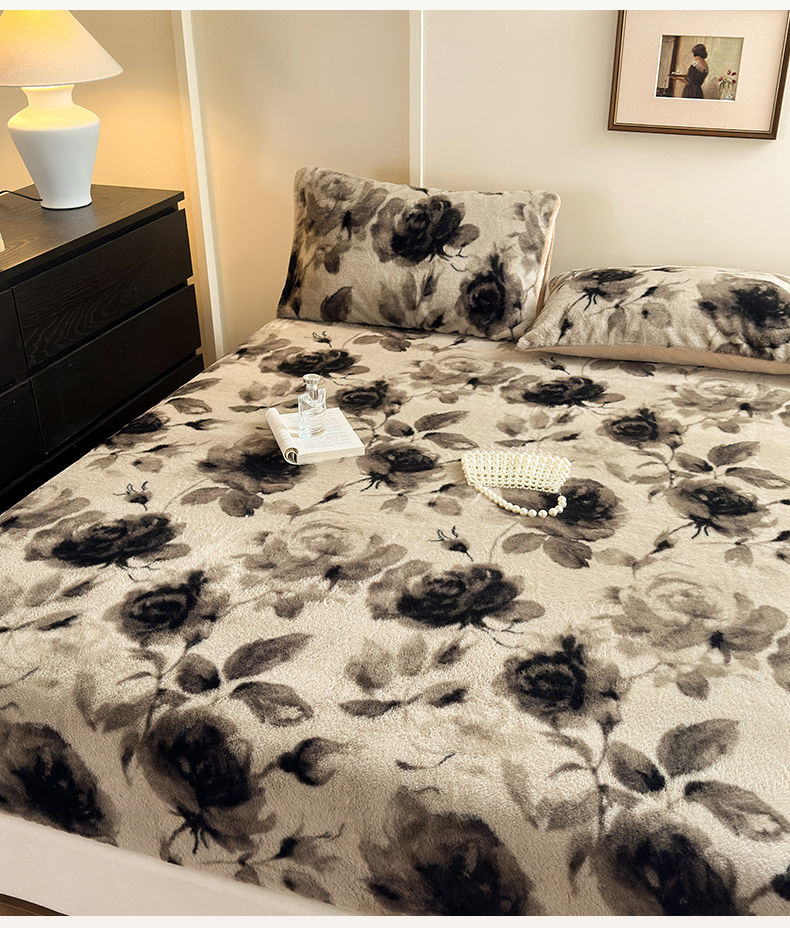 商品名称:娜娜 2025新款兔毛绒保暖床笠 黑牡丹