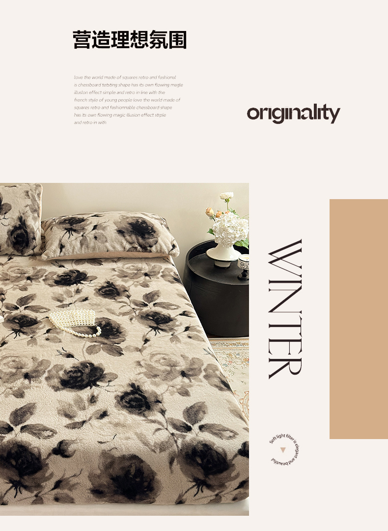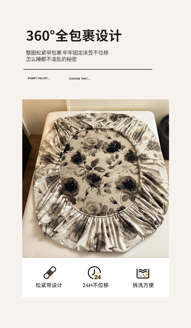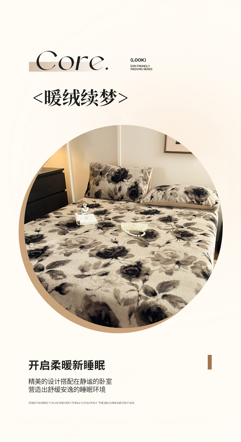 商品名称:娜娜 2025新款兔毛绒保暖床笠 黑牡丹