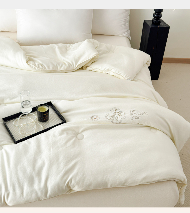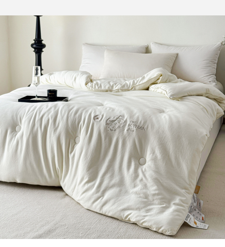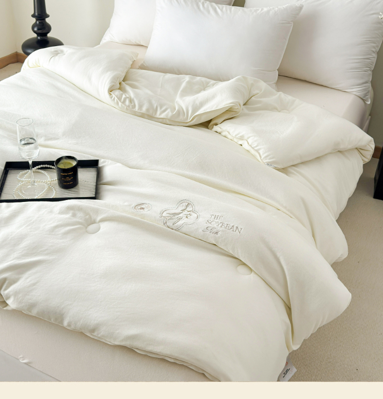 商品名称:曲之慕 2025新款亲肤舒适暖绒棉大豆被被子被芯 月光白