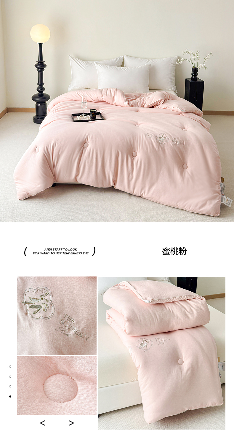 (总)曲之慕 2025新款亲肤舒适暖绒棉大豆被被子被芯,海盐蓝,蜜桃粉,优雅灰,月光白