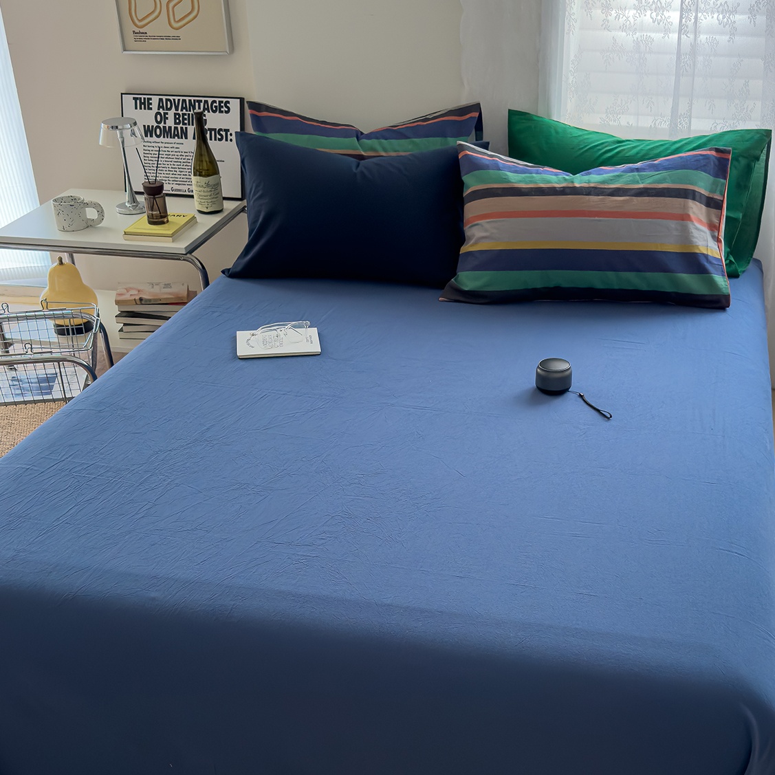对白 2025新款全棉色织水洗系列单床笠-曼切斯特(提供买家秀) 海蓝
