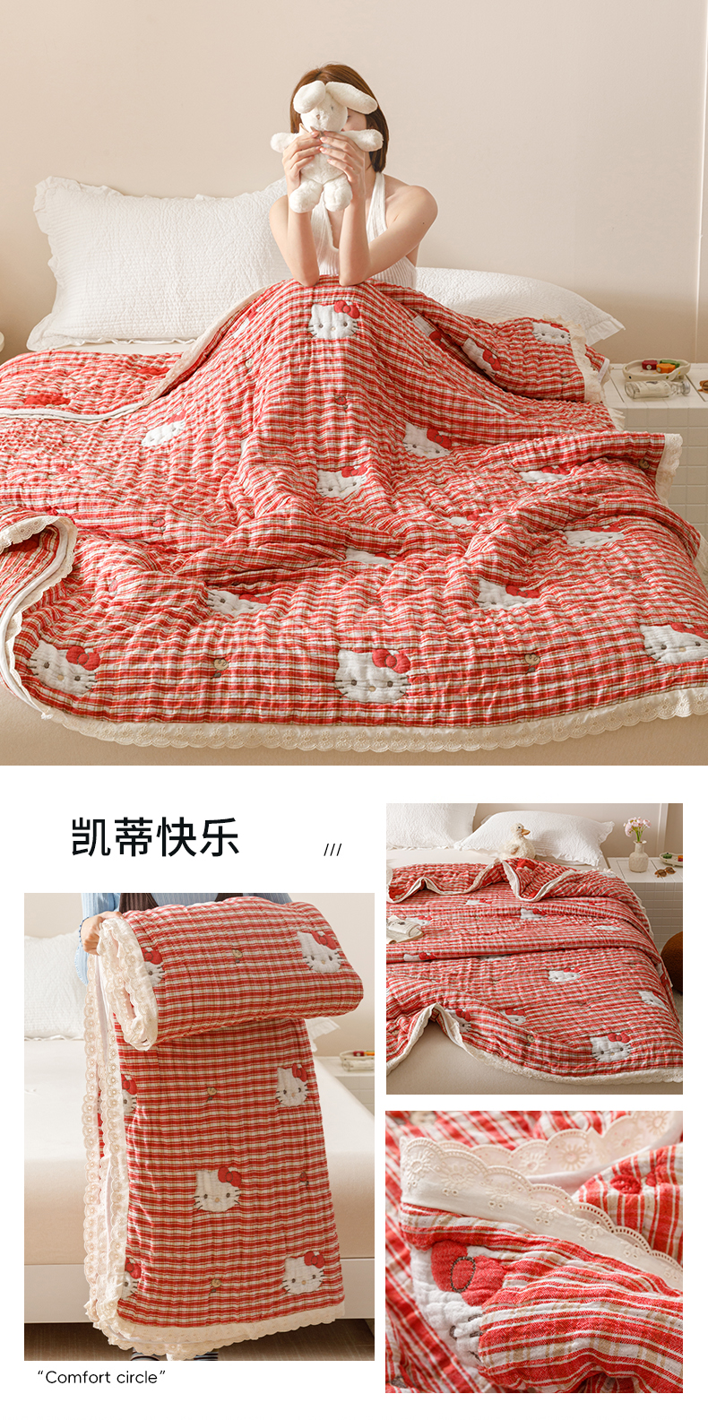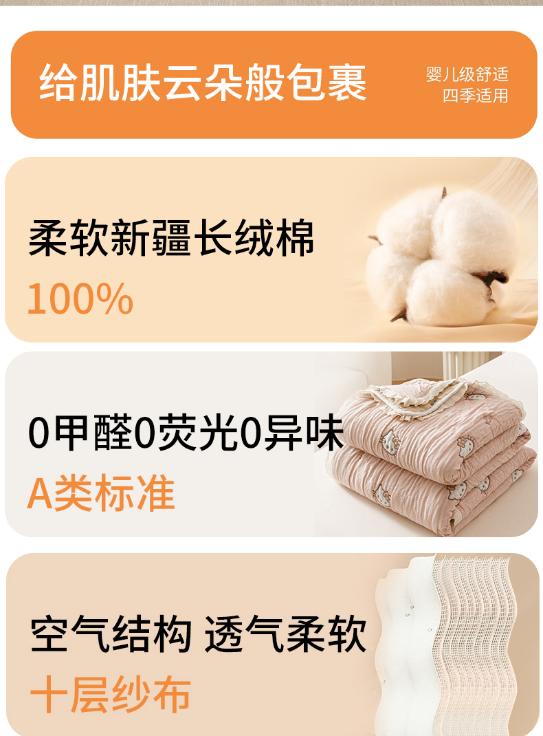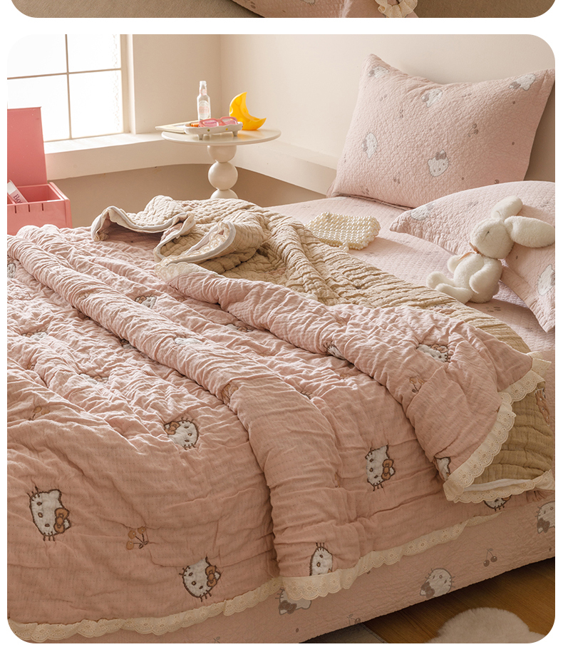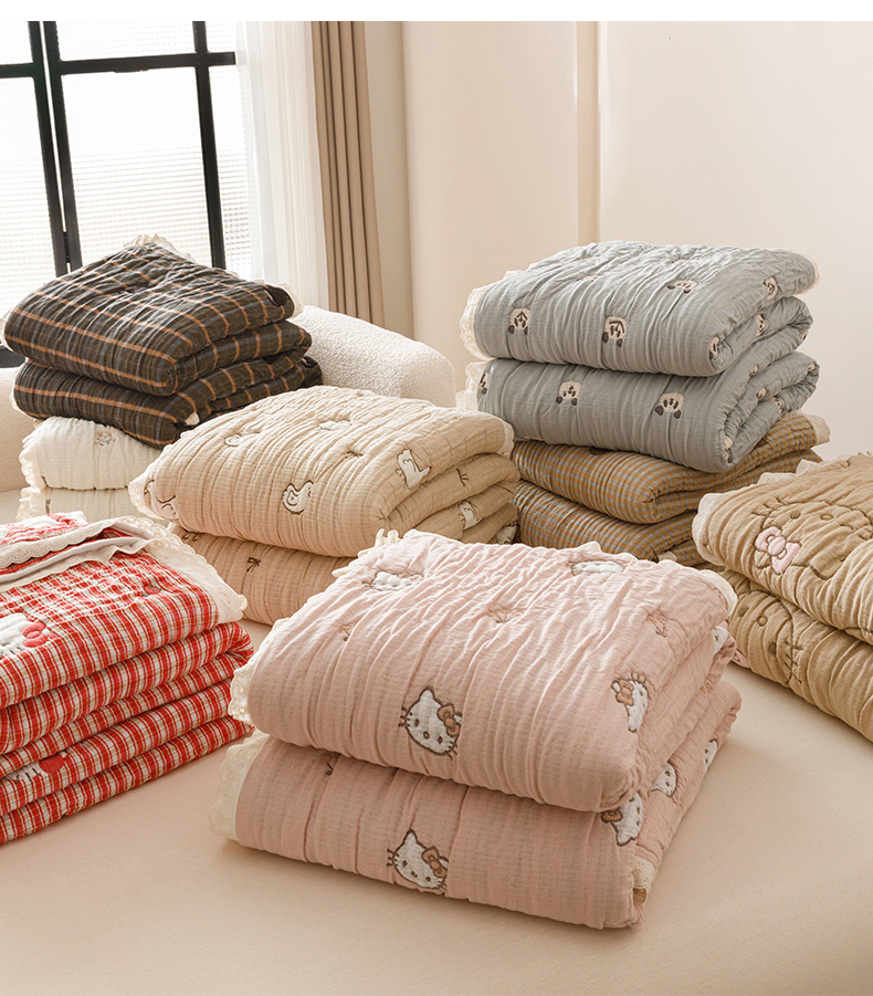 商品名称:麻依 2025新款卡通安心棉泡芙被十层全棉纱布被子被芯 樱桃兔猫
