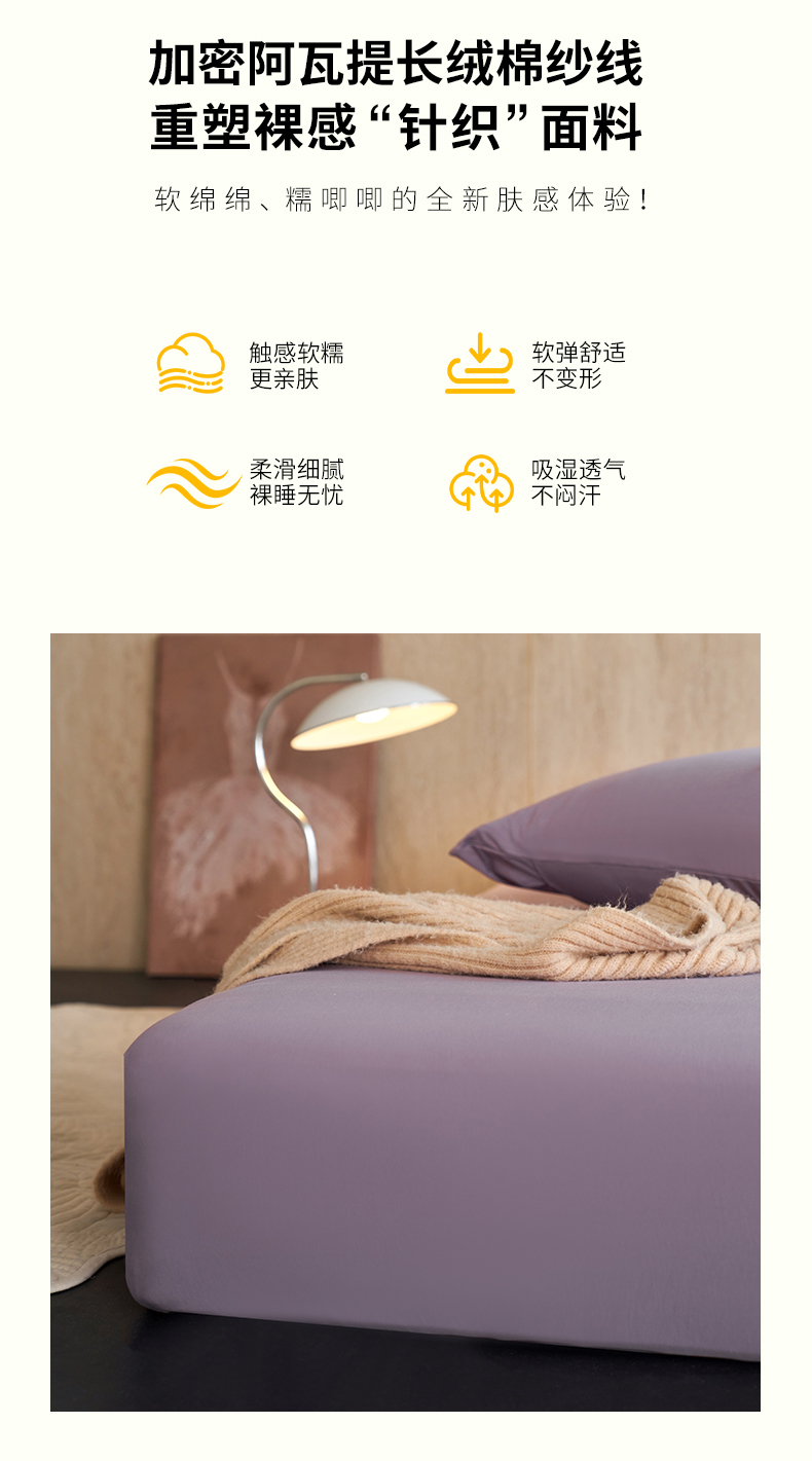商品名称:丽笙被芯 2025新款亲肤舒适阿瓦提针织全棉纯棉床笠单品床笠单件床笠 豆蔻紫