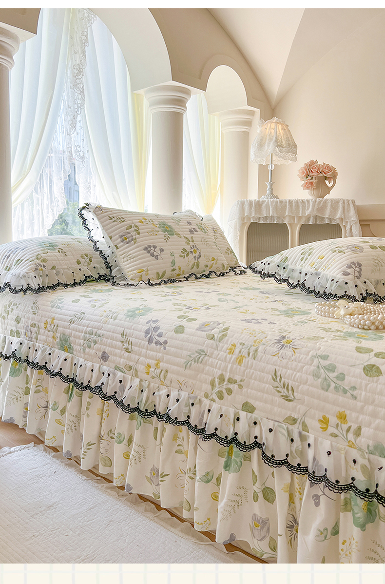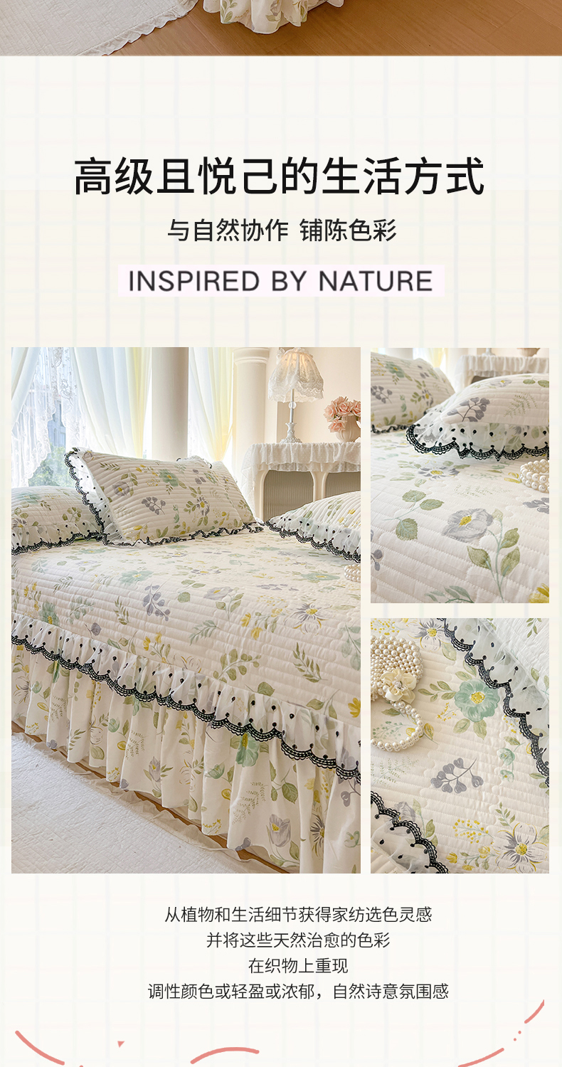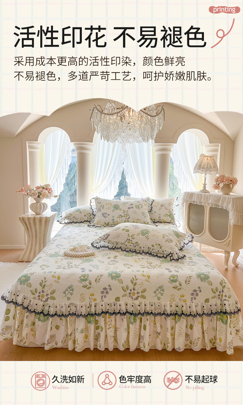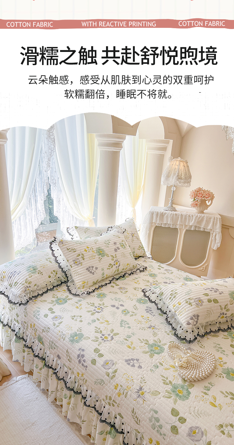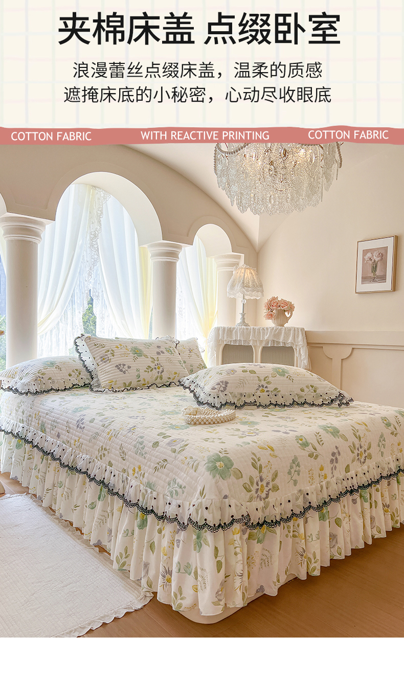 (总)网红馆(ck家纺) 2026新款全棉蕾丝花边床裙款床笠晨暮花间系列,绯红,粉色,麦绿,米色,浅紫,雾蓝
