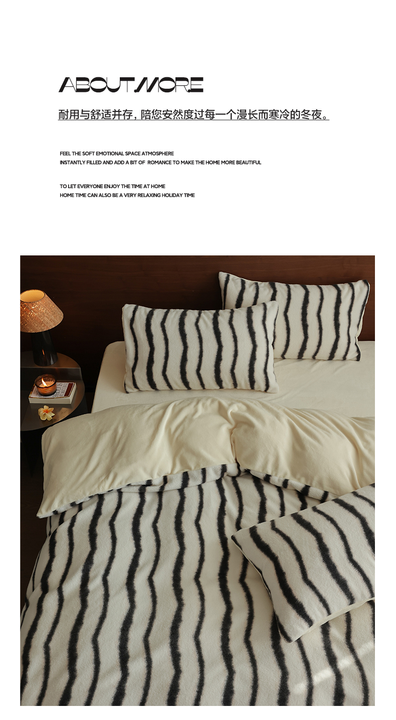 商品名称:(总)三味舒屋 2025新款黑白风尚仿生羊毛绒牛奶绒四件套(控价券后不低于288/308)