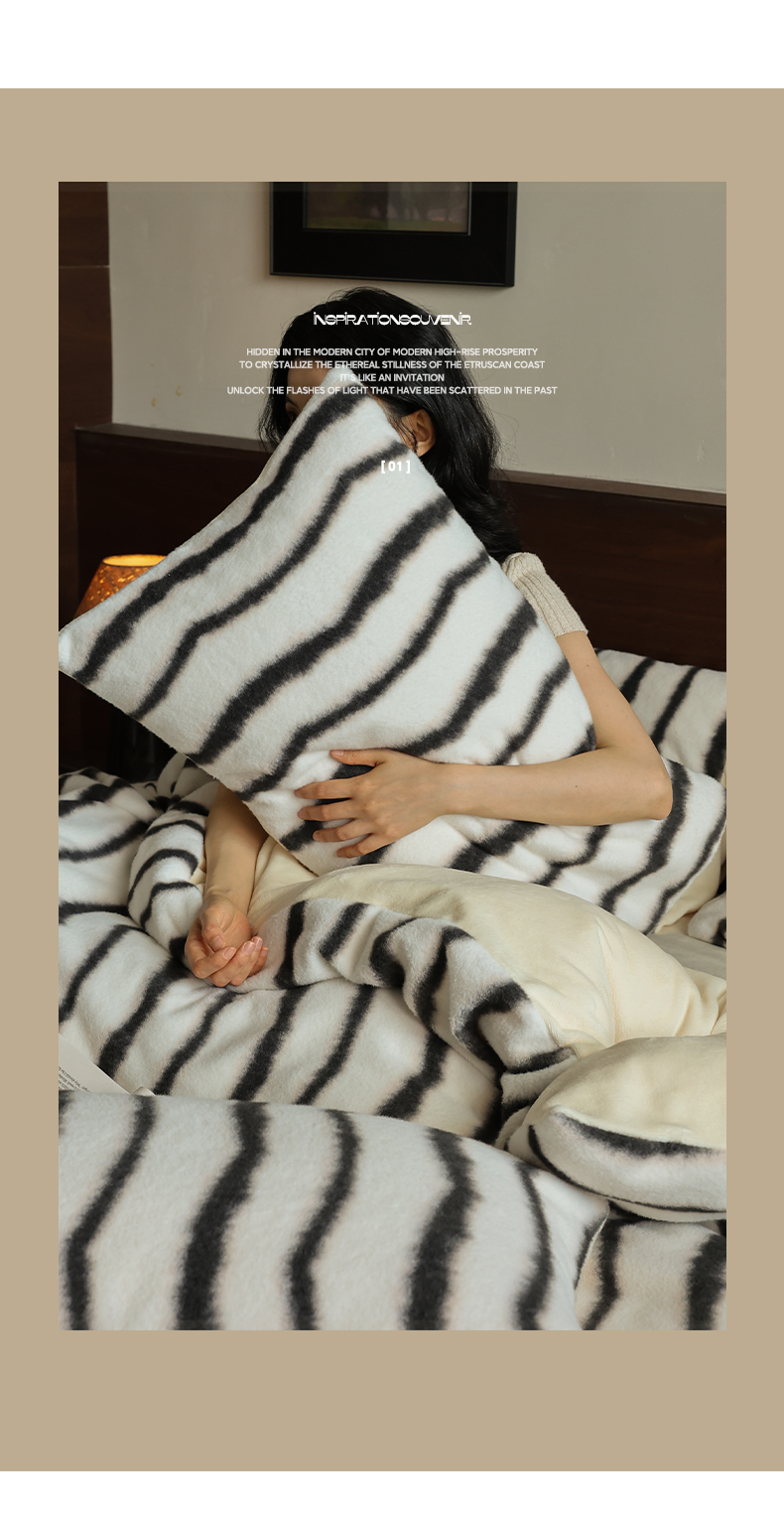(总)三味舒屋 2025新款黑白风尚仿生羊毛绒牛奶绒四件套(控价券后不低于288/308)