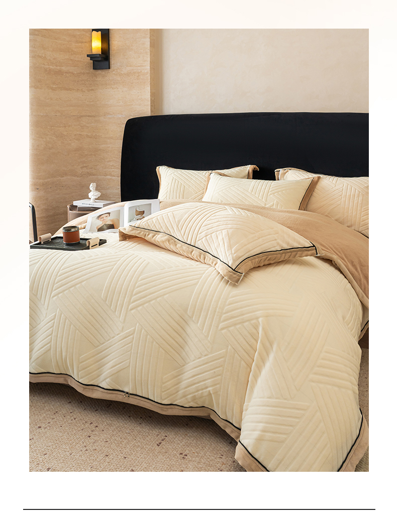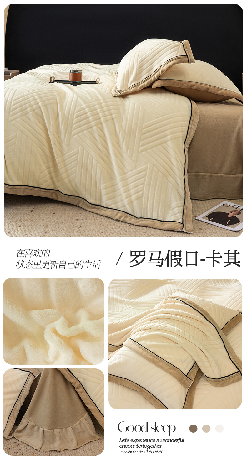 总满座 2025直播爆款高端小方格320克獭兔毛绒立体剪花纯色牛奶绒四件套,奶油咖,典雅灰,蜜桃粉,奶白咖,清新绿,天空蓝,奶油白