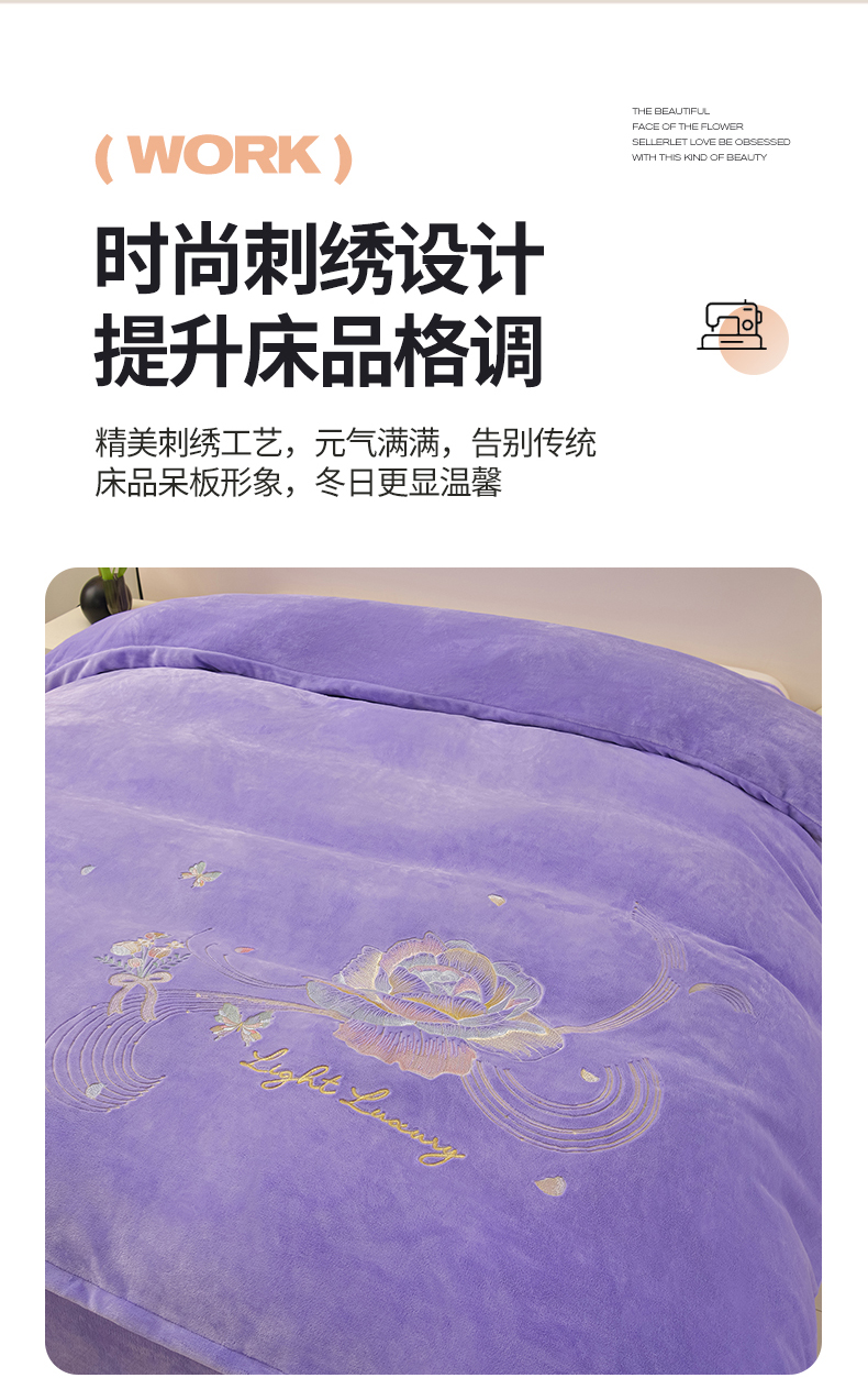 绒小宣 2025新款A类牛奶绒刺绣四件套-蝶恋花 浅夏紫