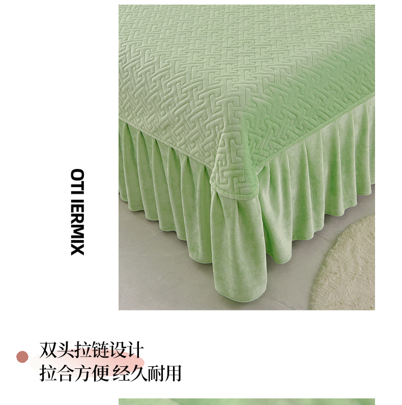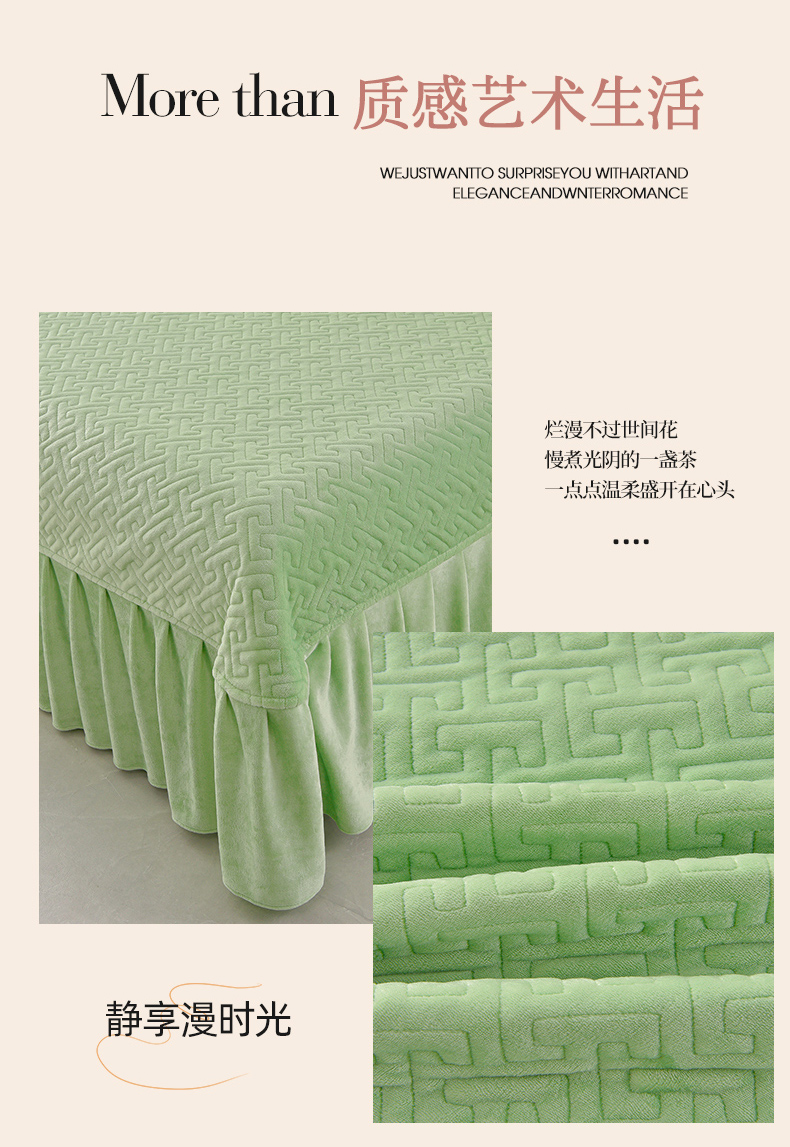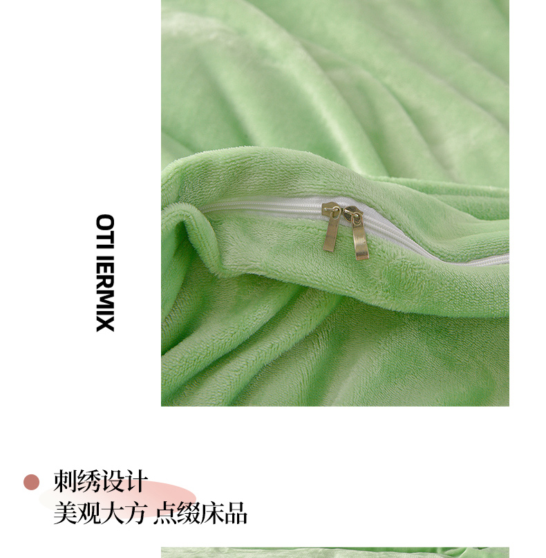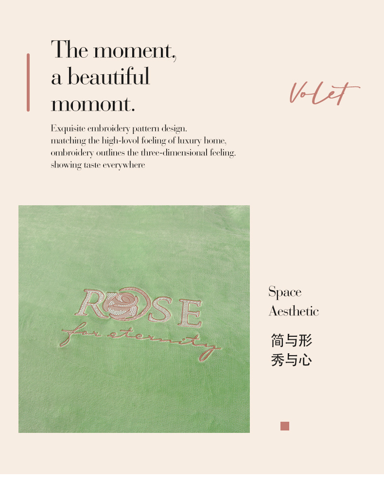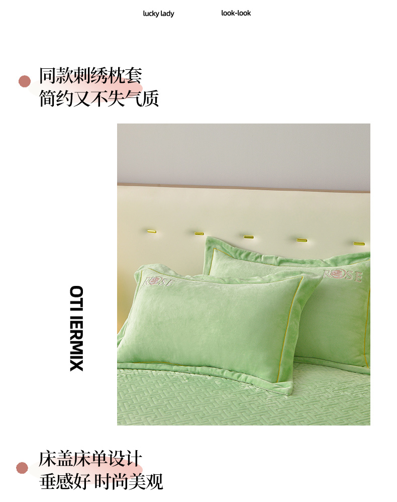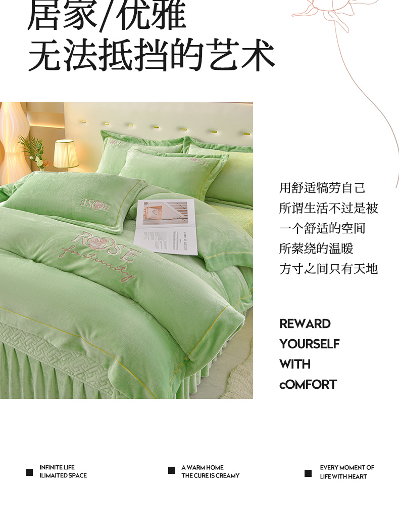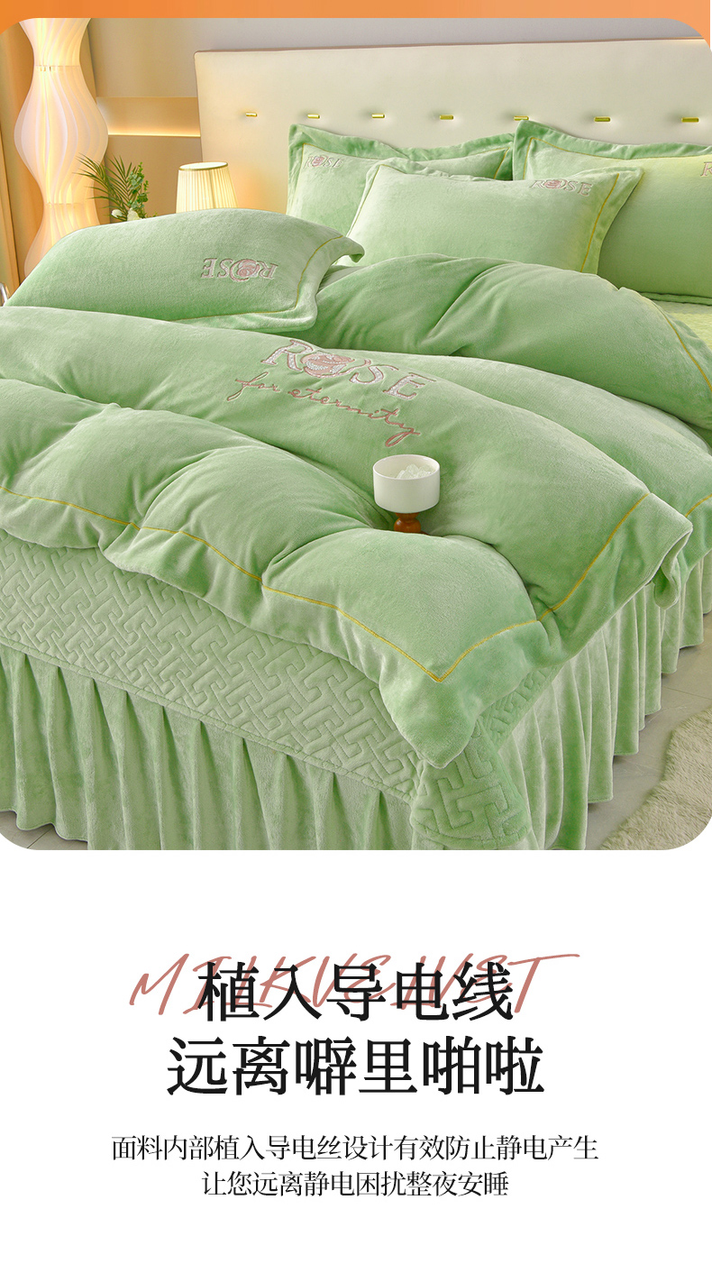 商品名称:绒小宣 2025新款加厚牛奶绒四件套宽边一字绣牛奶绒刺绣花夹棉床盖款四件套-玫瑰花语 玫瑰花语-绿色