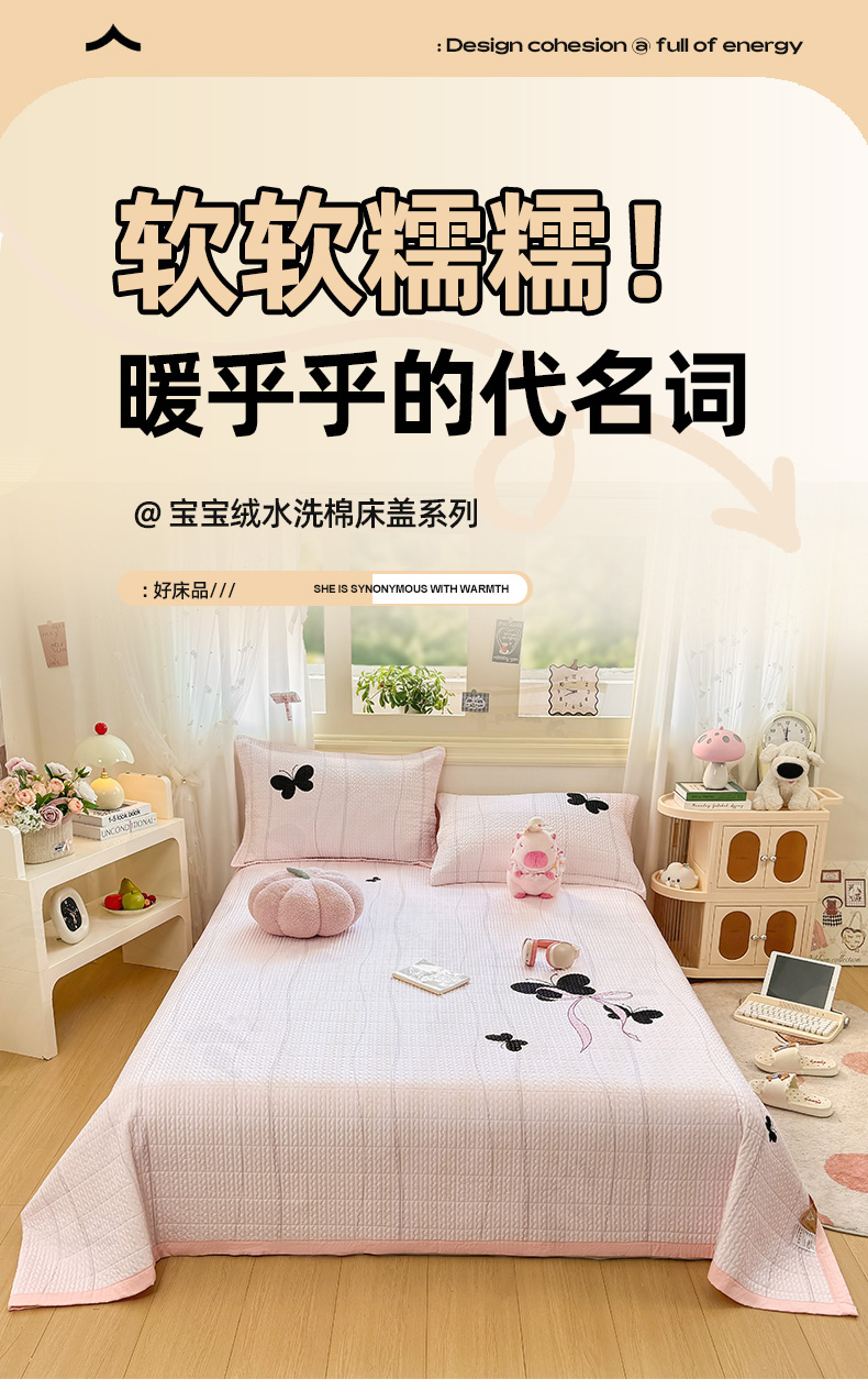 商品名称:芷凡家纺 2025新款宝宝绒水洗棉高温水洗床盖三件套 追光