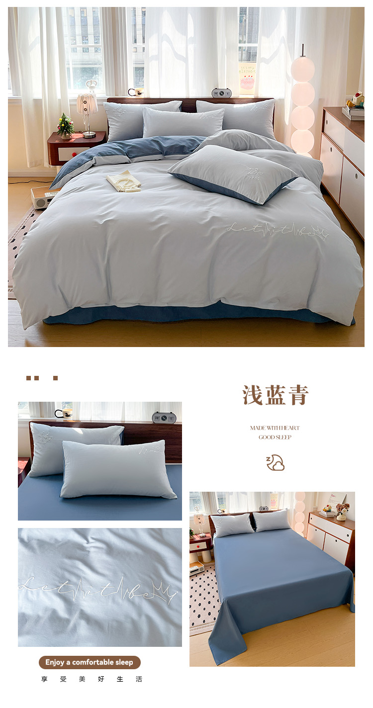 (总)有点武功 2025新款全棉纯色刺绣磨毛四件套(控价每个尺寸+30元),粉灰,果绿黄,黑绿,浅灰,浅蓝粉,浅蓝青,深蓝灰,深蓝咖