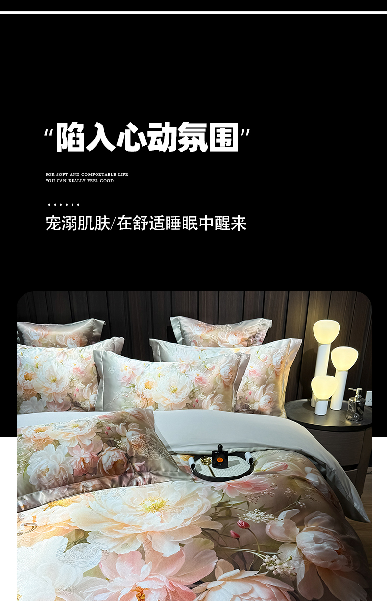 七夜居 2025新款直播爆款欧式大阪轻奢贡缎提花加数码印花磨毛四件套 国色天香