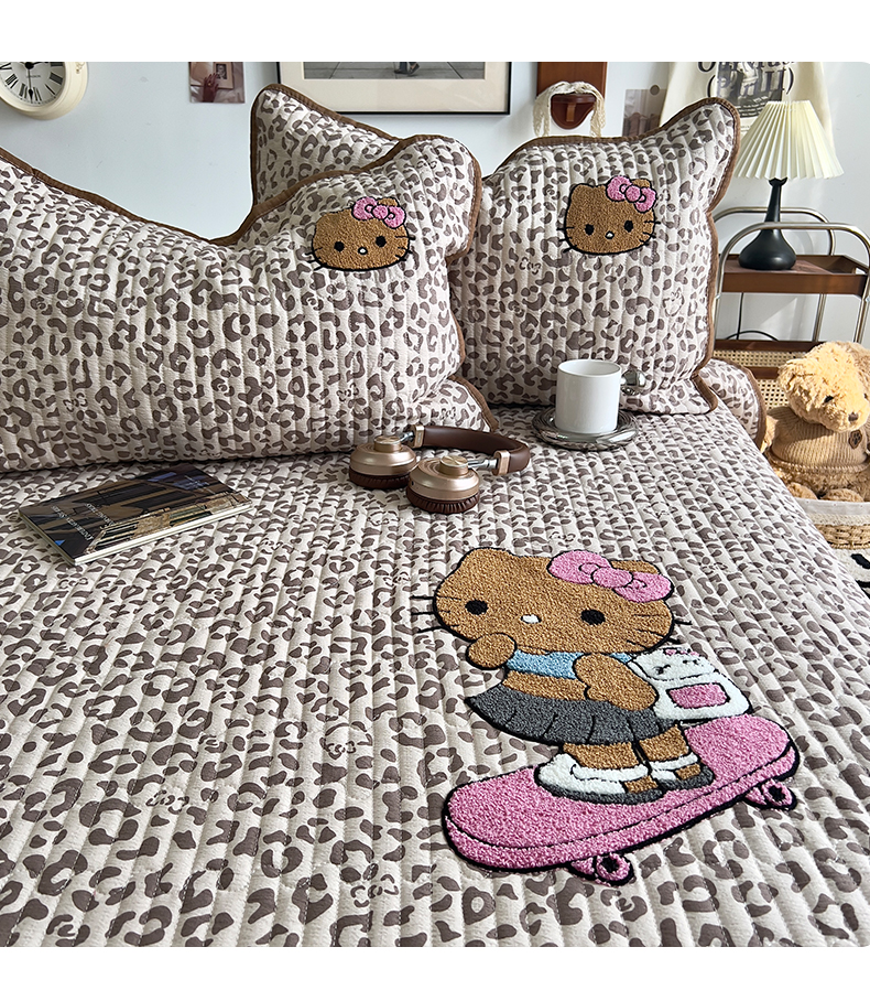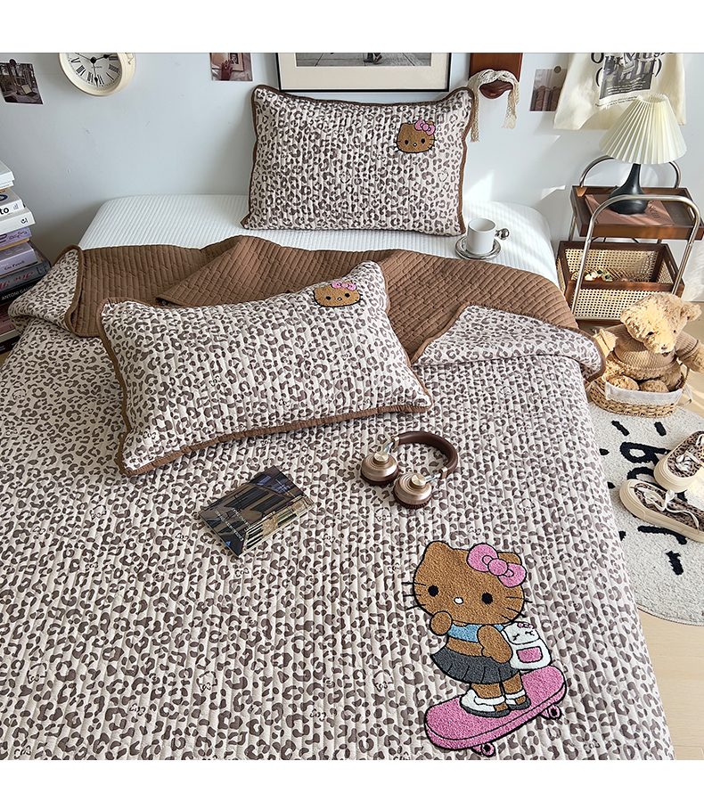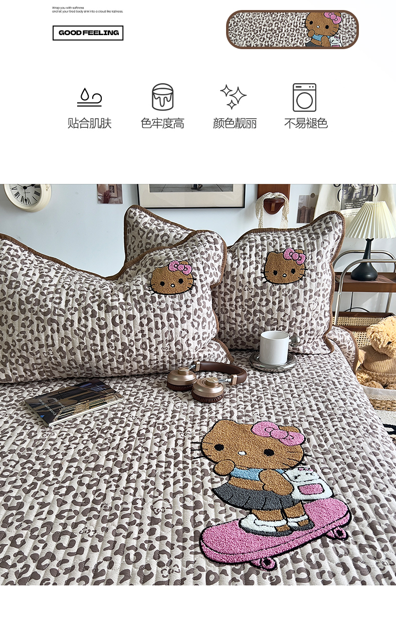 原素 2026新品直播热款床盖多功能四季通用夹棉A类床盖三件套 床盖-滑板车猫粉
