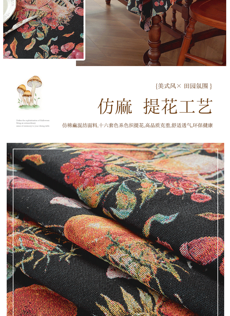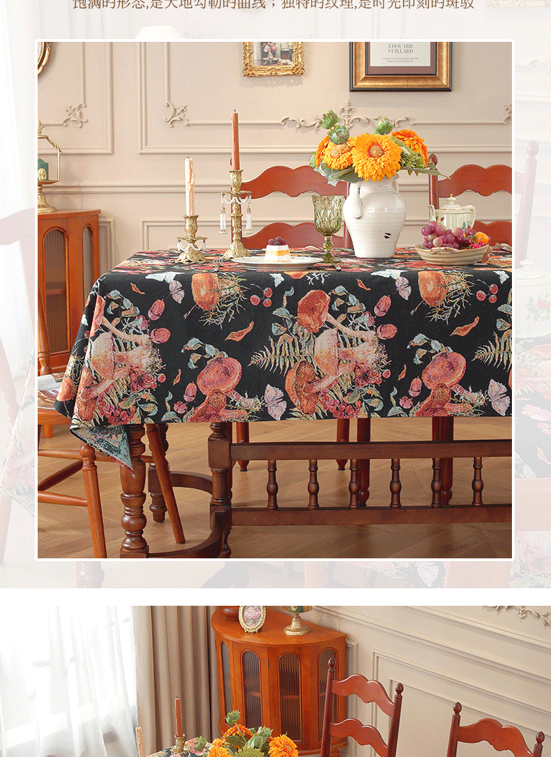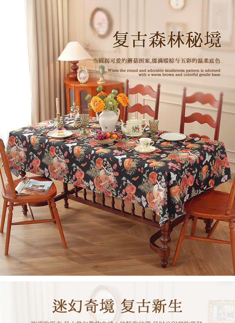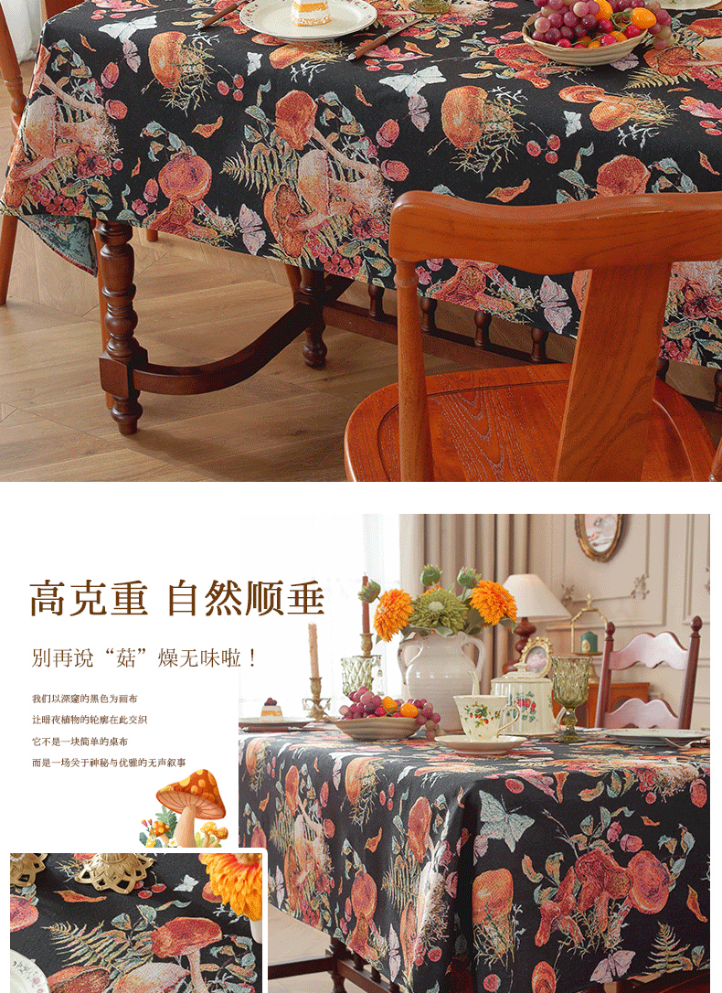 商品名称:(总)南通大梧纺织 2025新款复古森林秘境黑蘑菇园桌布