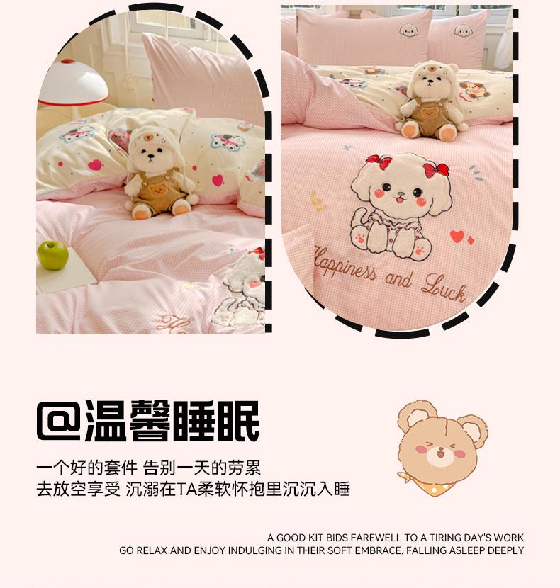 (总)悦兴家纺 2025新款A类水洗棉卡通幸运熊四件套(含买家秀),幸运熊奶粉,幸运熊奶蓝,幸运熊蓝格,幸运熊绿格,幸运熊奶绿,幸运熊粉格
