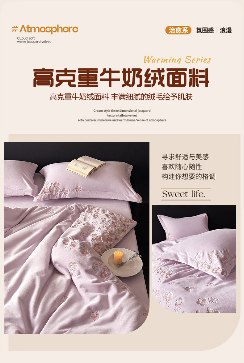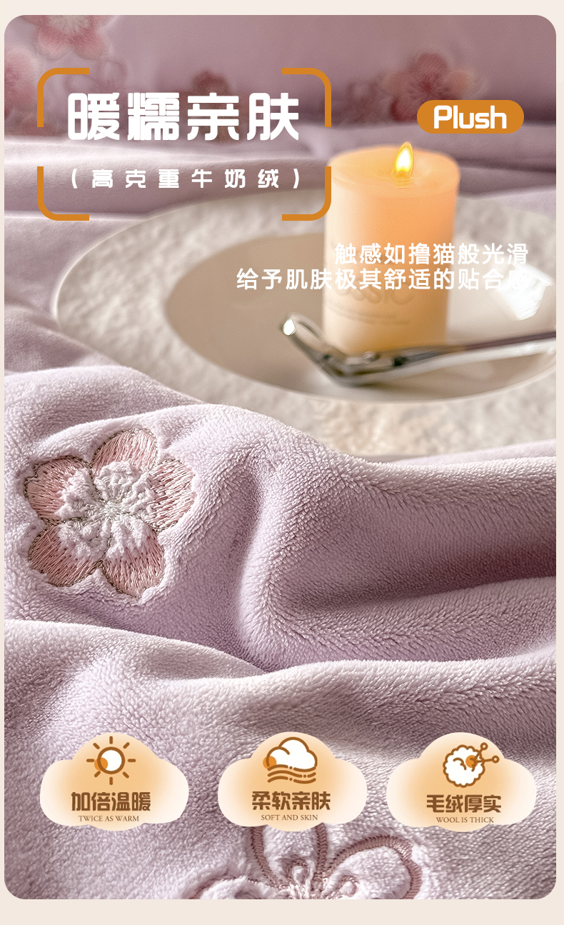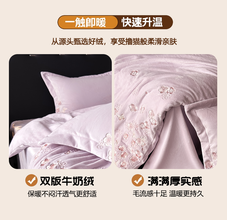 水云缦 2025新款230克全消光牛奶绒绣花四件套-樱花系列 樱花-浅紫