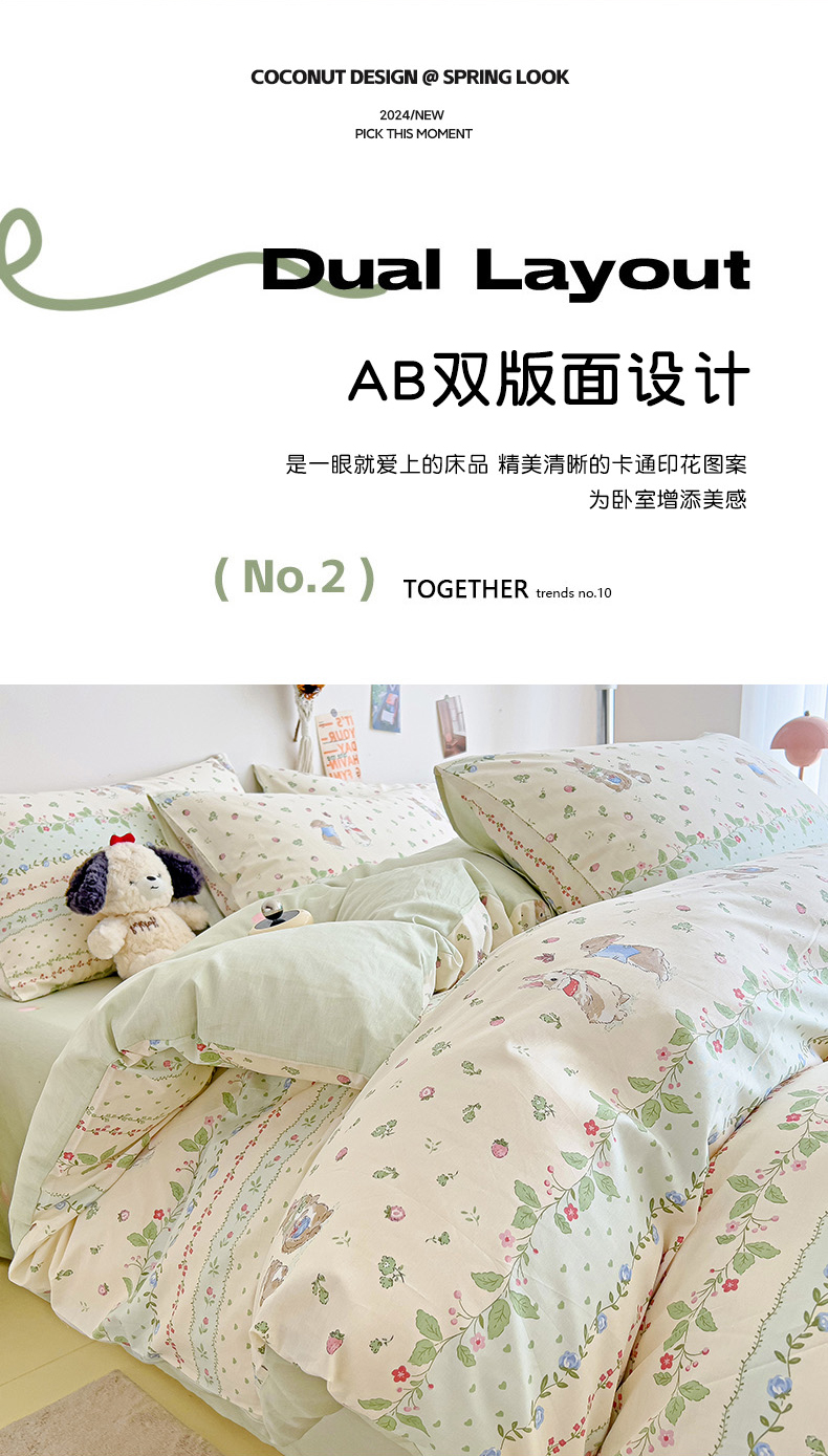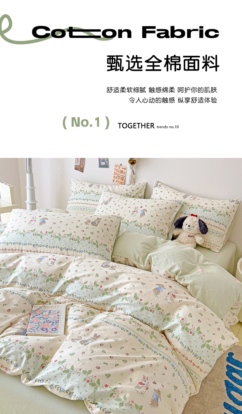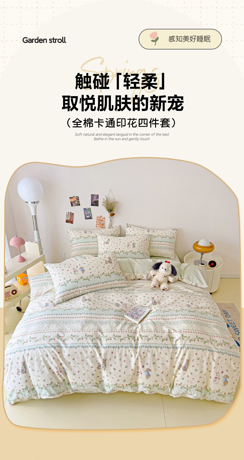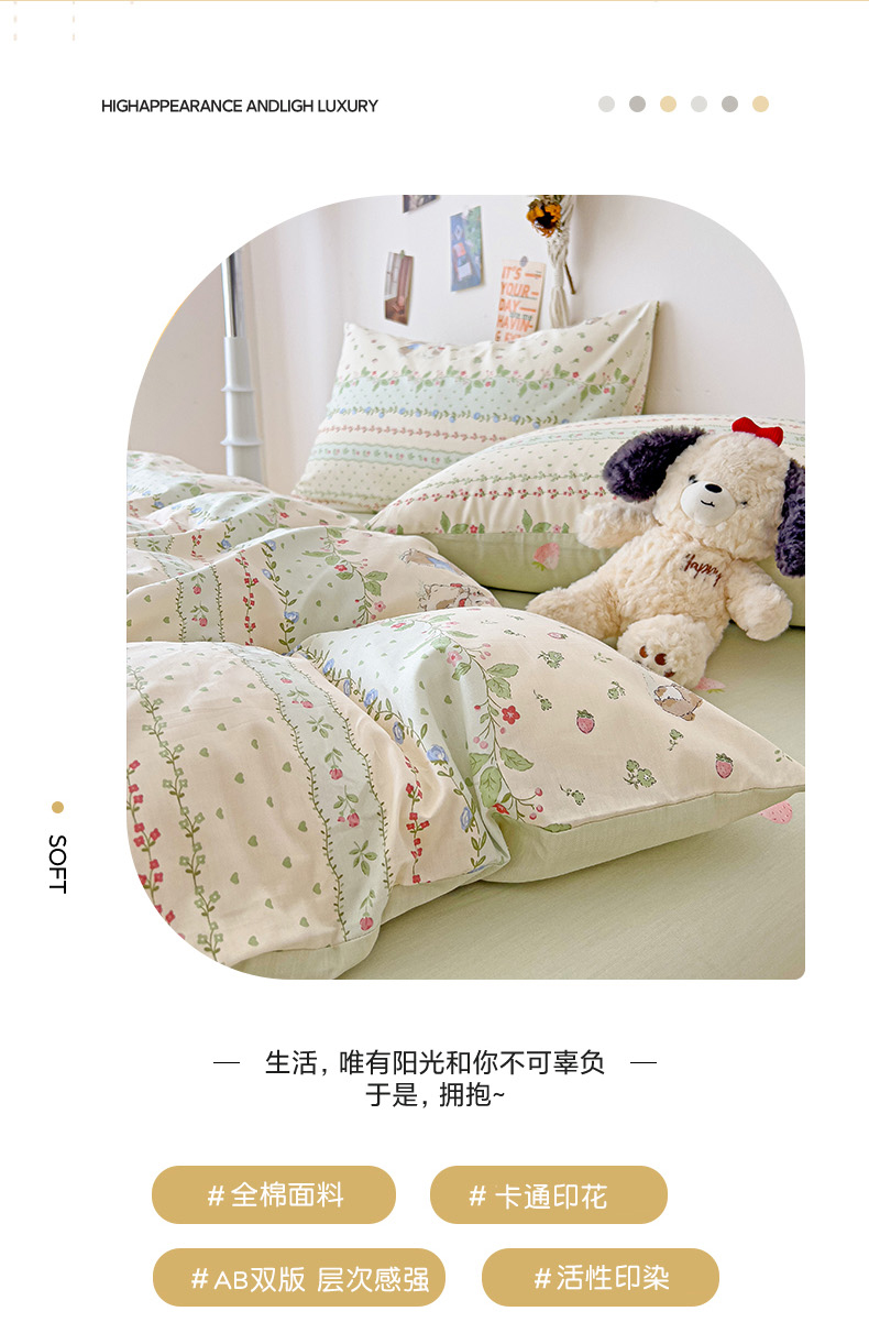 当前位置: 91家纺网 > 商品网购 > 床品套件 > 四件套 > 全棉普通四件套 > 西引力 2025新款全棉卡通印花四件套 草莓小兔