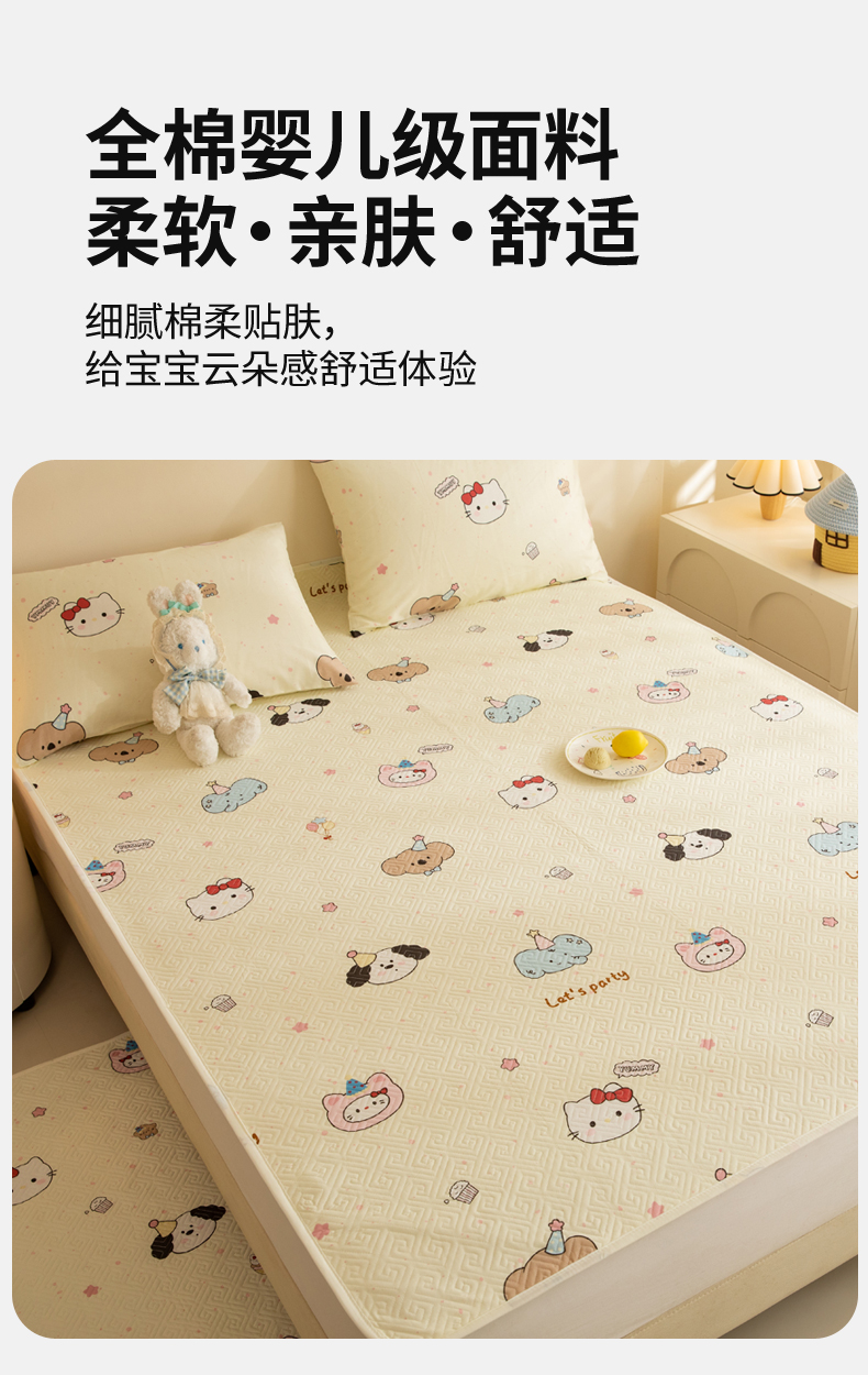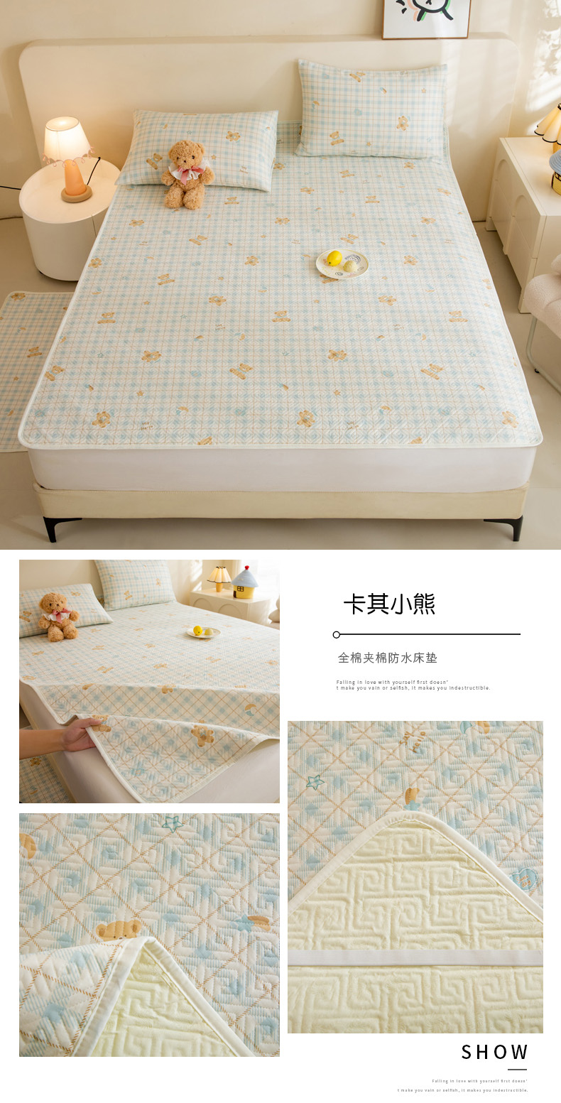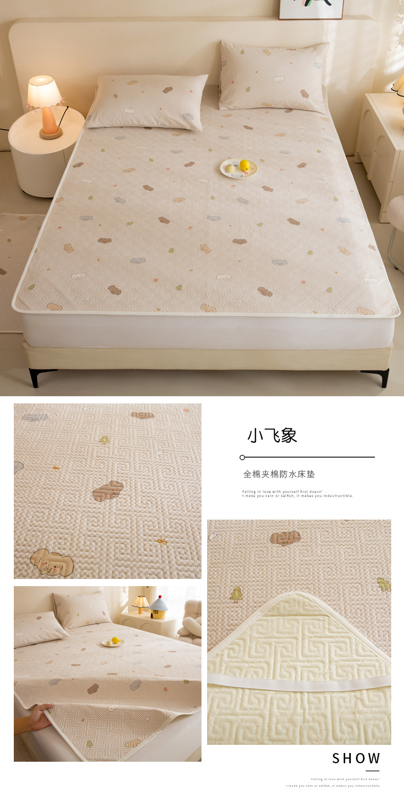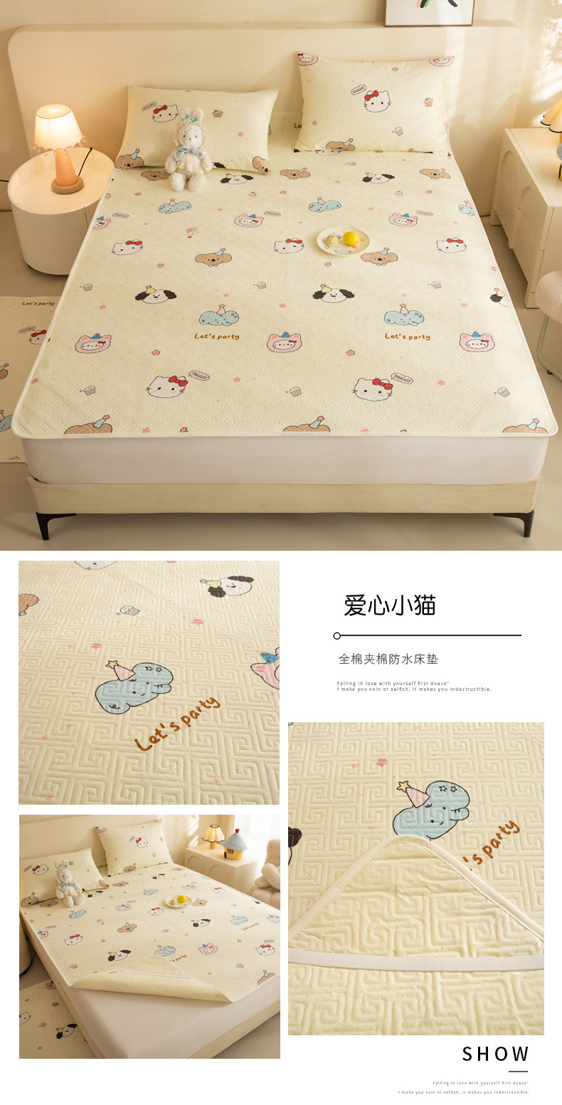 (总)美达家纺 2025新款A类全棉夹棉防水床垫儿童隔尿垫婴儿床防水防滑姨妈护理垫【可定制】,爱心小猫,卡其小熊,快乐小马,小飞象,小町的家