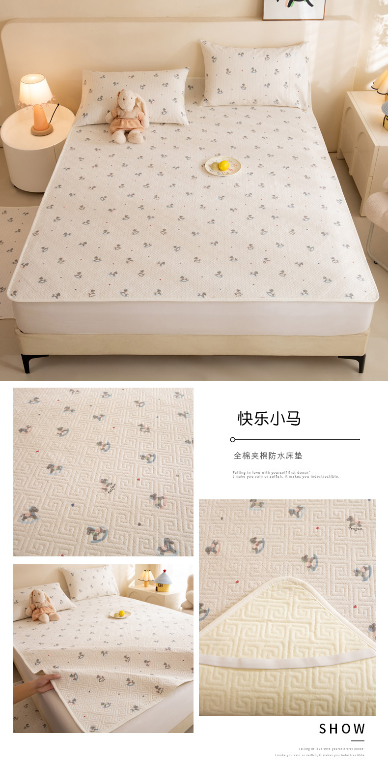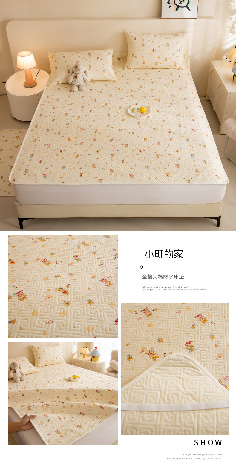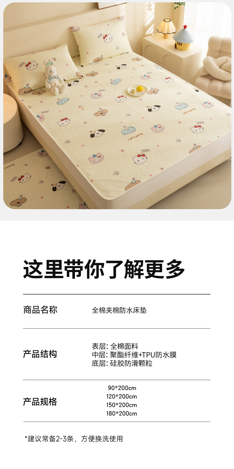 (总)美达家纺 2025新款A类全棉夹棉防水床垫儿童隔尿垫婴儿床防水防滑姨妈护理垫【可定制】,爱心小猫,卡其小熊,快乐小马,小飞象,小町的家