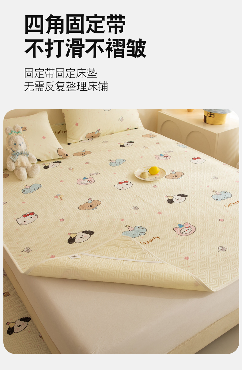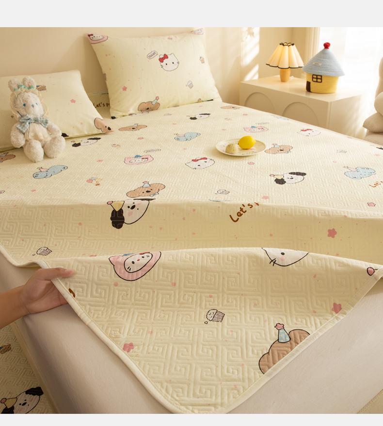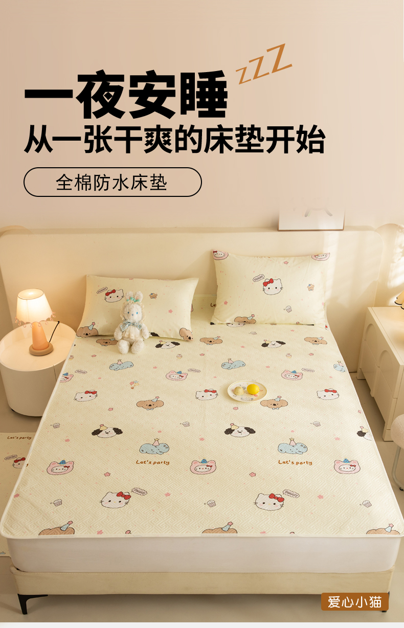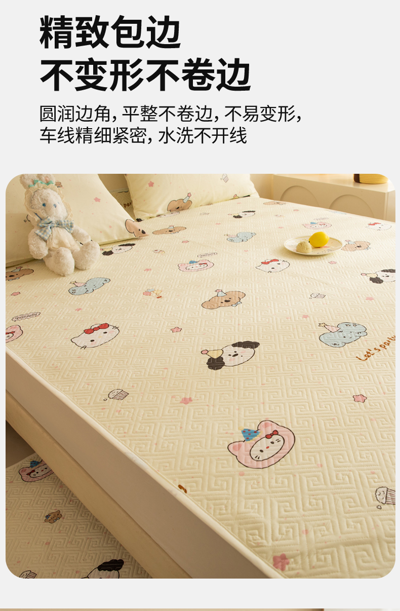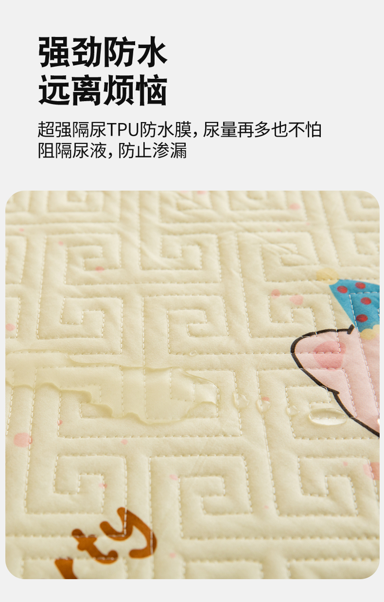 (总)美达家纺 2025新款A类全棉夹棉防水床垫儿童隔尿垫婴儿床防水防滑姨妈护理垫【可定制】,爱心小猫,卡其小熊,快乐小马,小飞象,小町的家