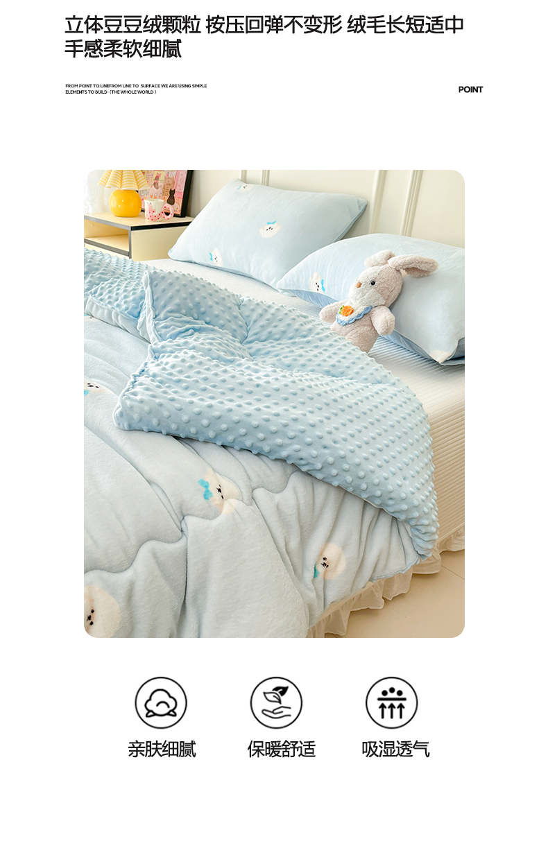 商品名称:贝扬思家纺 2025新款卡通牛奶绒豆豆绒抗菌被冬被被子被芯-奶豆 奶豆-彩珍珠