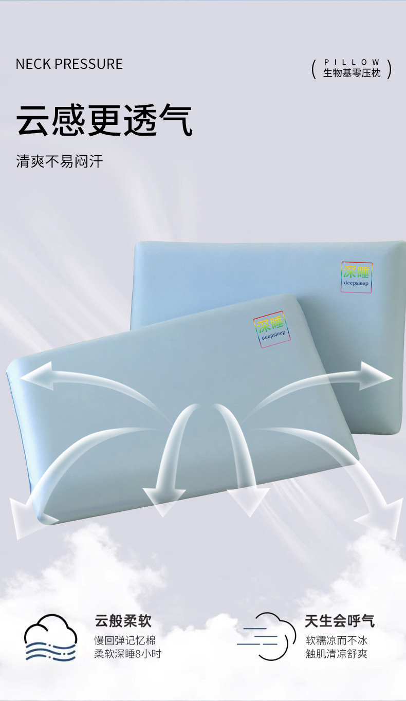 (总)纳斯顿家纺 2025新款麻绳款生物基记忆枕枕头枕芯,轻奢灰,少女粉,天空蓝