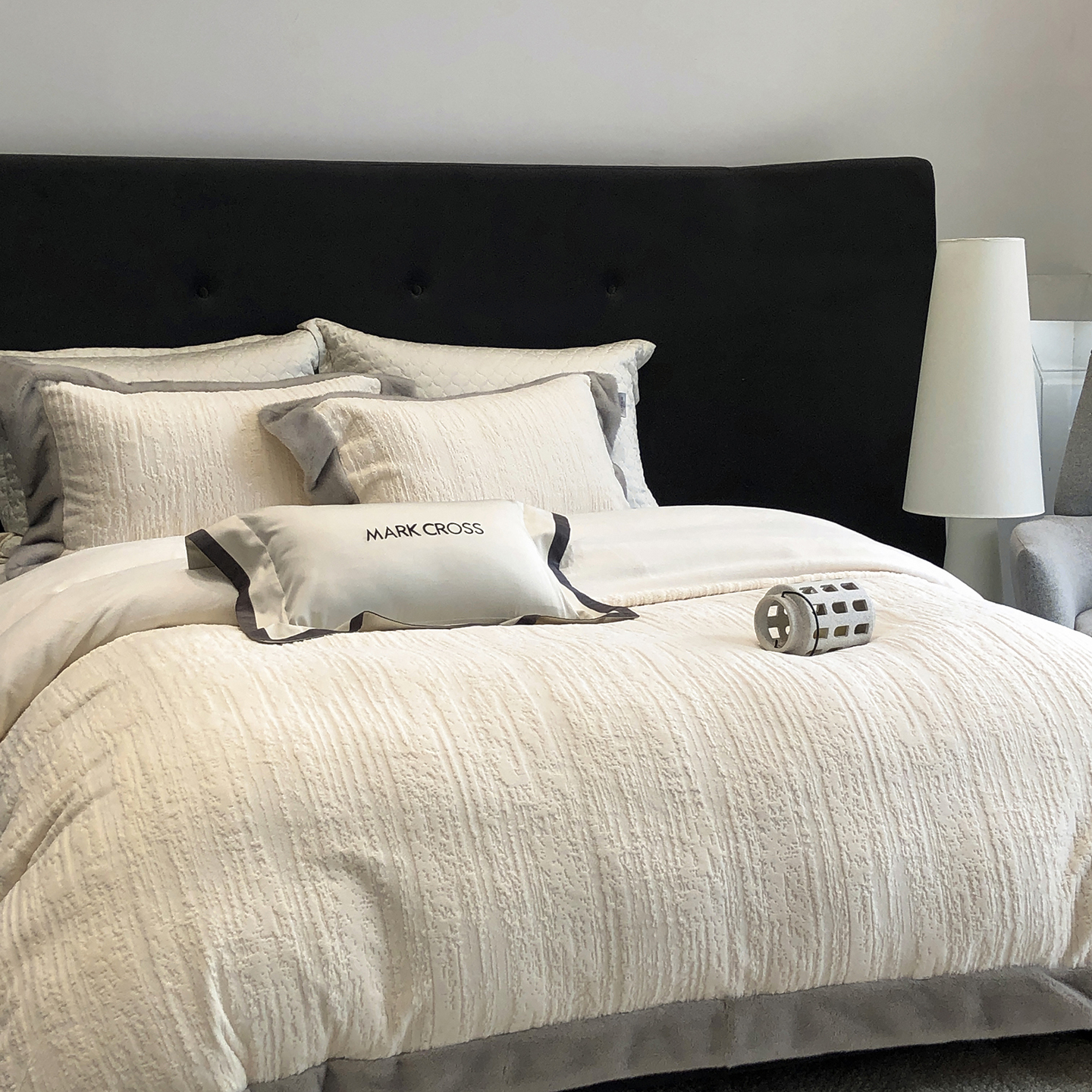 (总)佳汐蓝家纺 2026新款新疆长绒棉全棉纯棉轻奢五线刺绣四件套,初雪白,稻谷米,冷釉灰,汐雾蓝,薰衣紫,釉粉,朱砂红