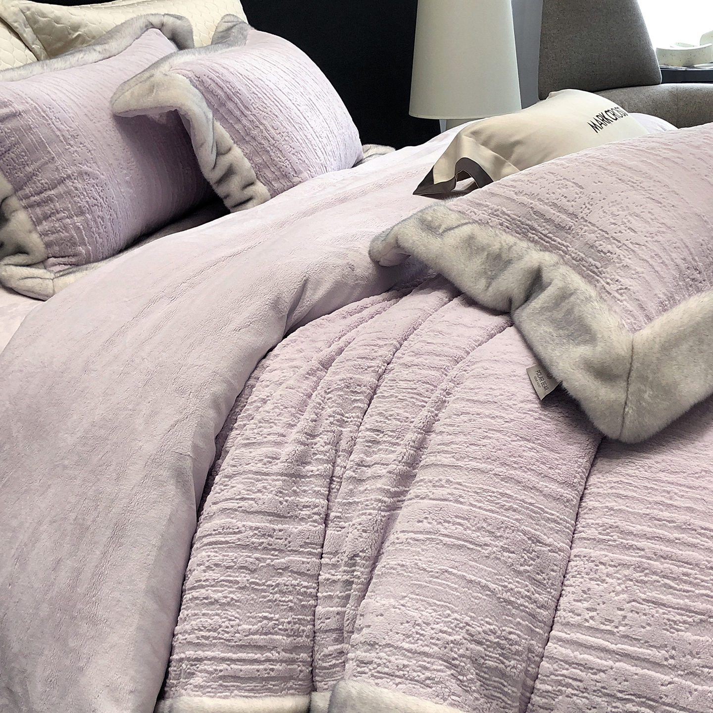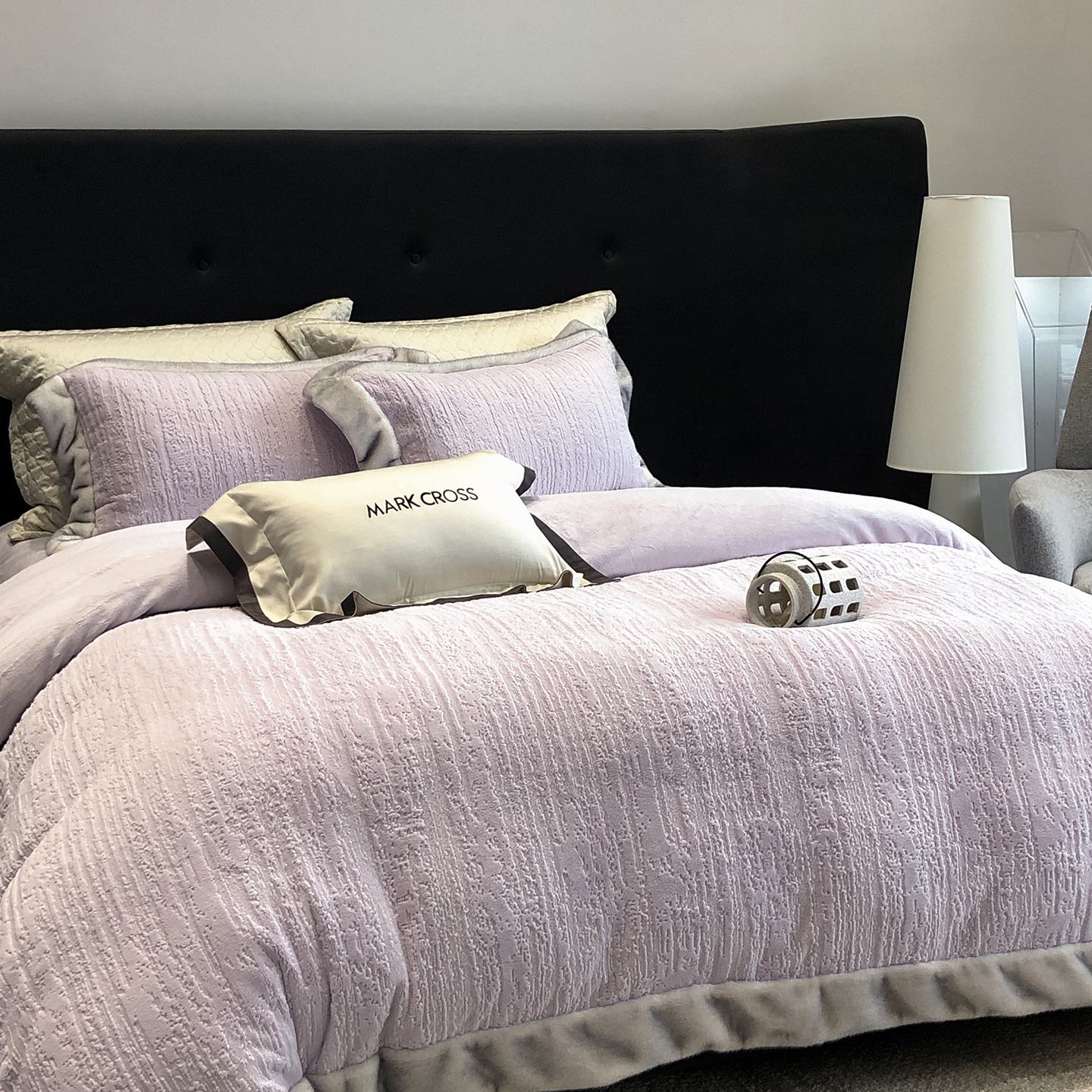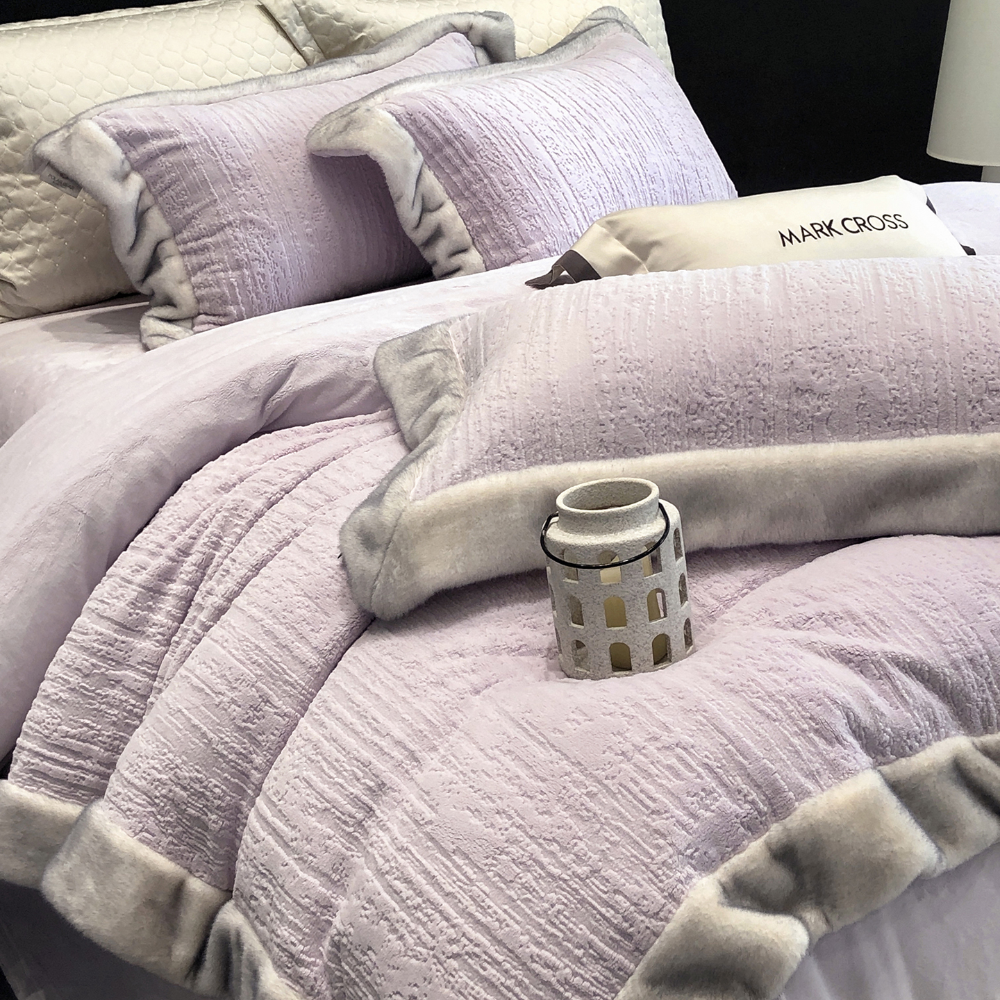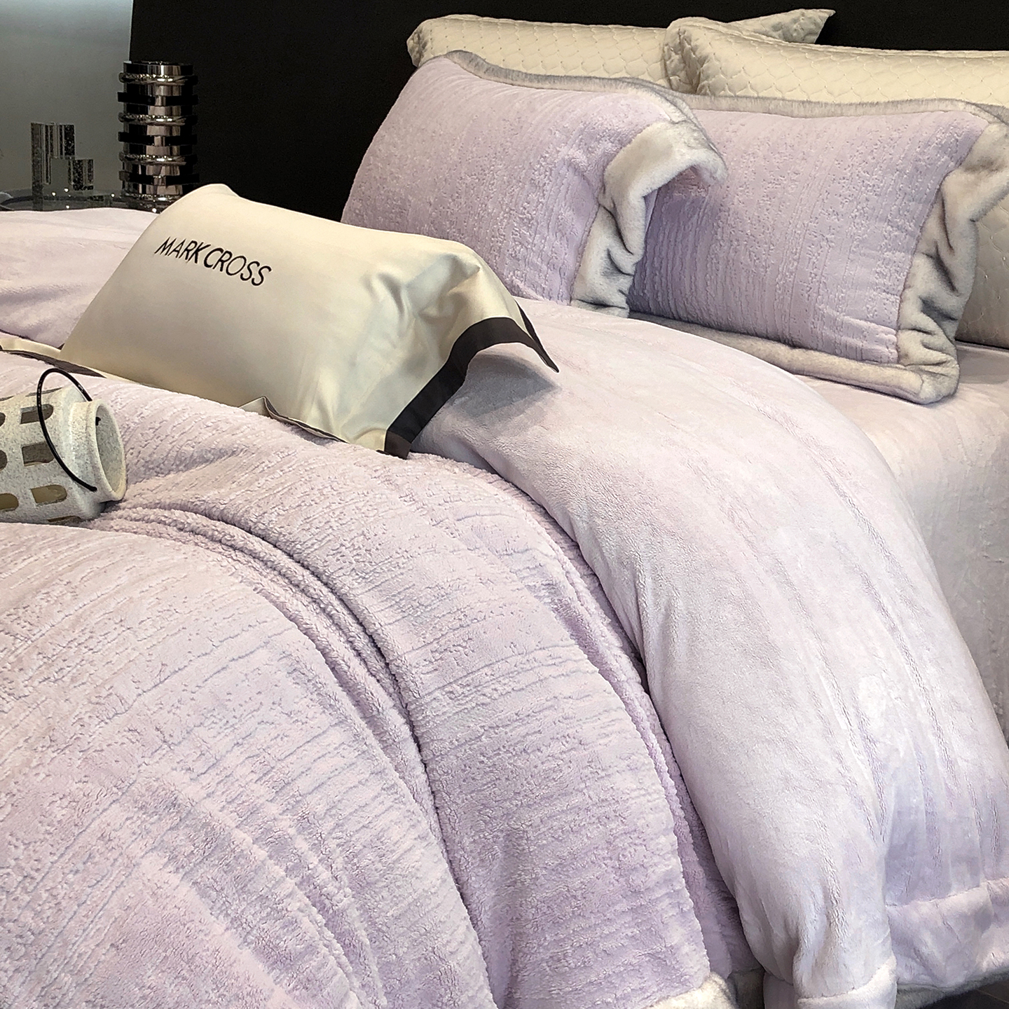 佳汐蓝家纺 2025新款高奢暖绒立体浮雕熊极绒系列四件套 融冬北极狐-奶芋紫