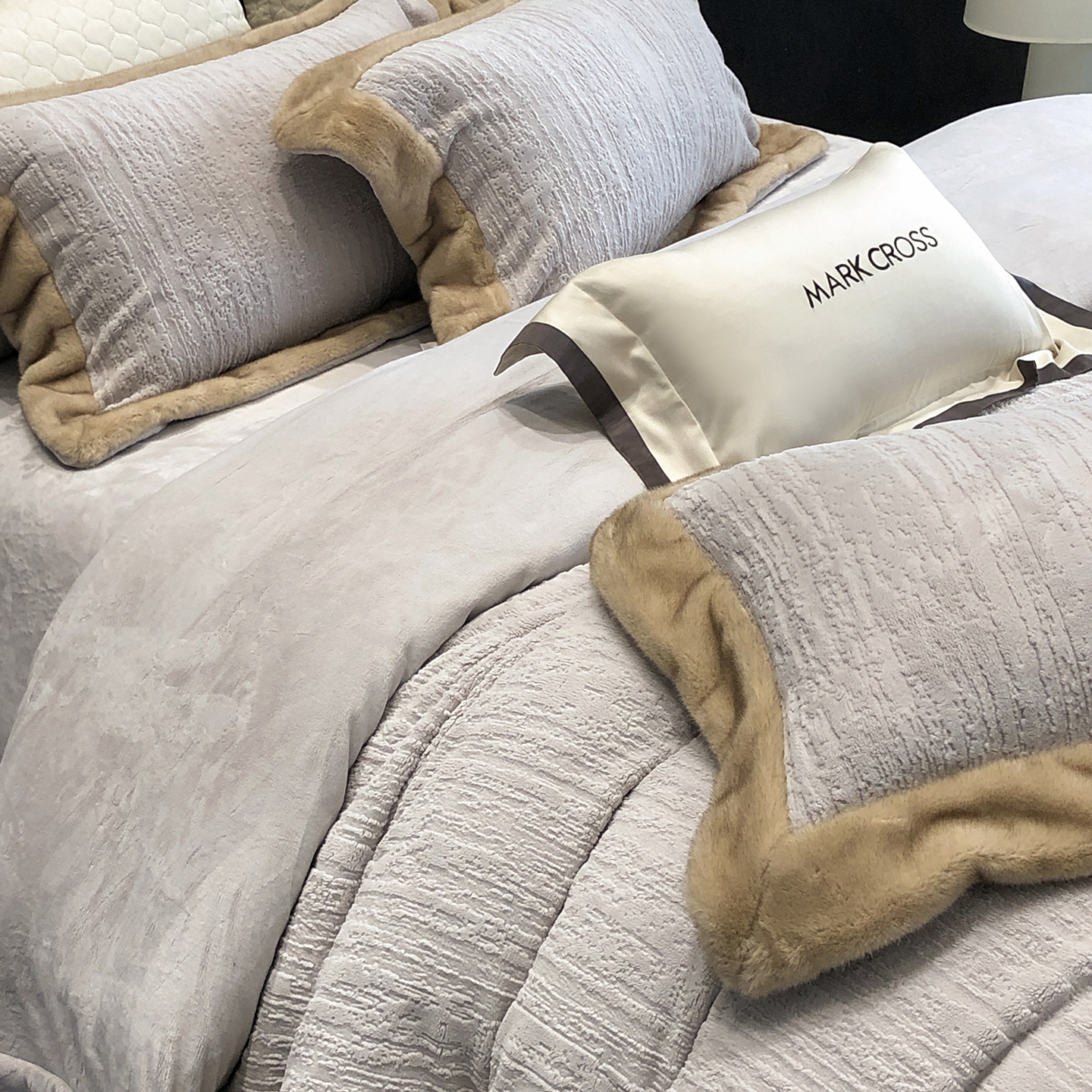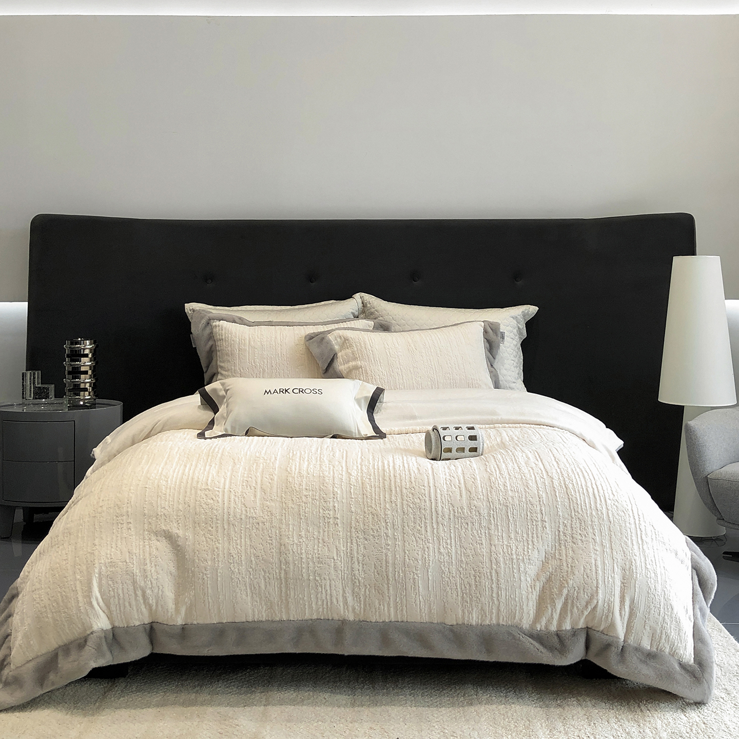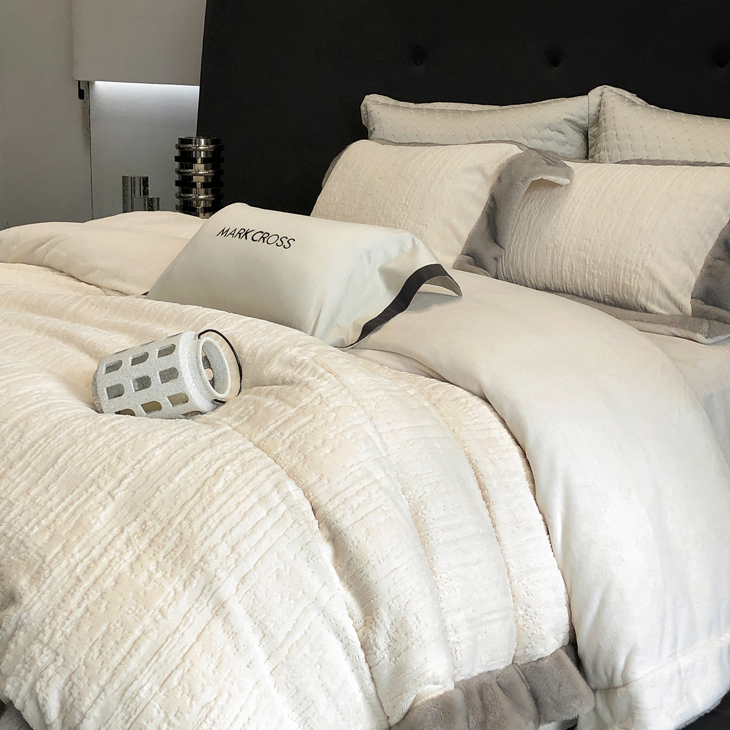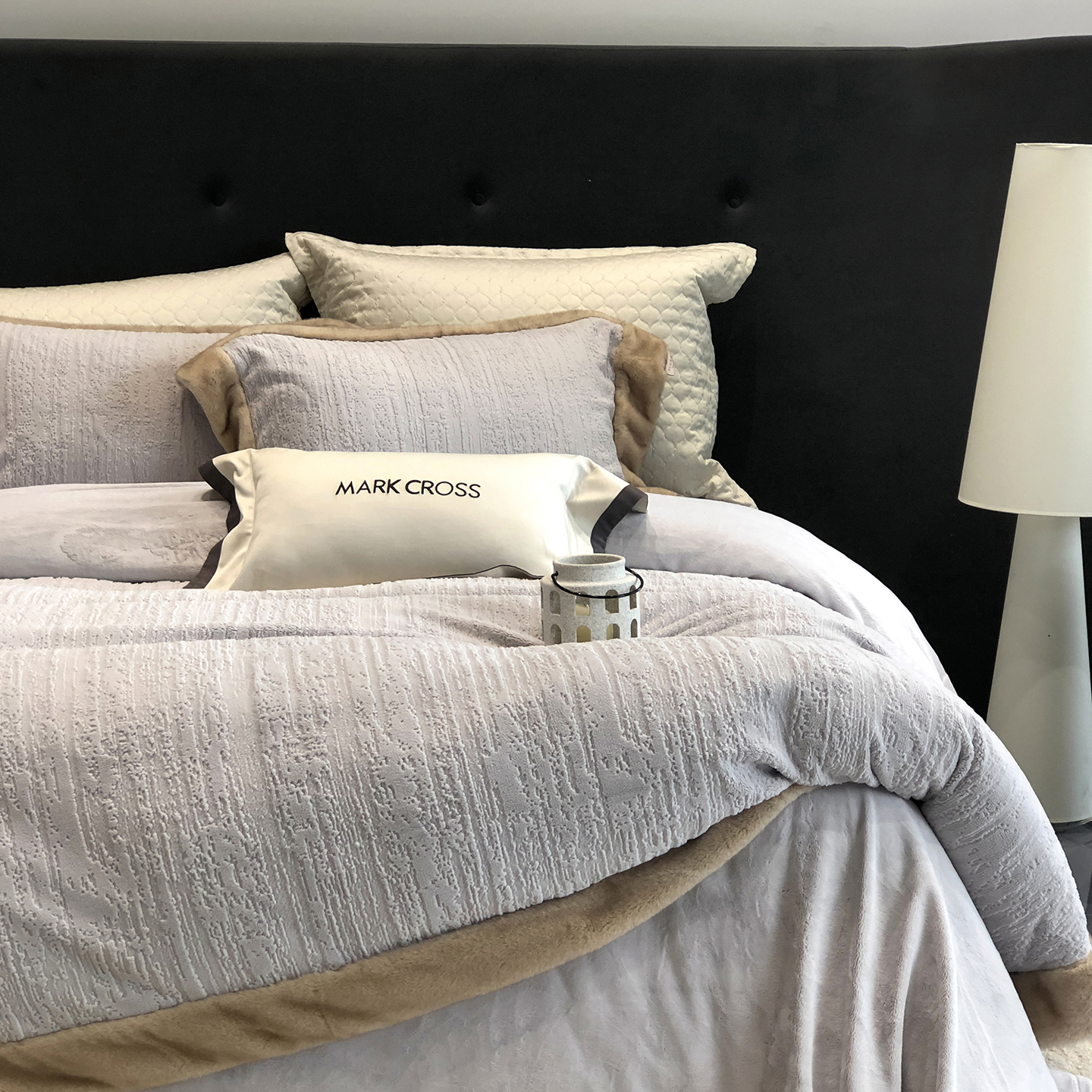 佳汐蓝家纺 2025新款高奢暖绒立体浮雕熊极绒系列四件套 融冬北极狐-奶芋紫