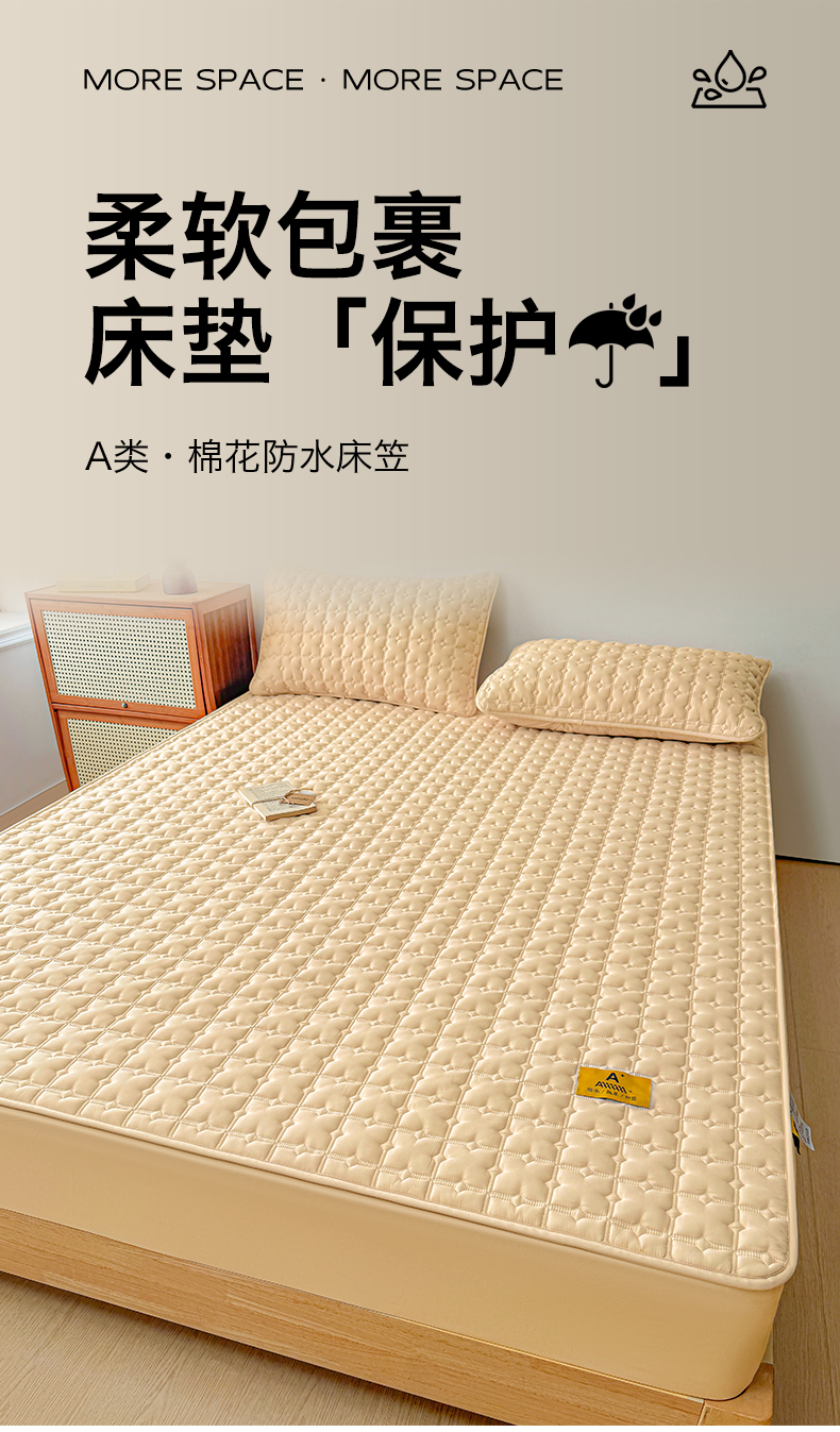(总)居眠 2026新款防水夹棉床笠-云梦系列,云梦-白,云梦-粉,云梦-灰,云梦-卡,云梦-蓝