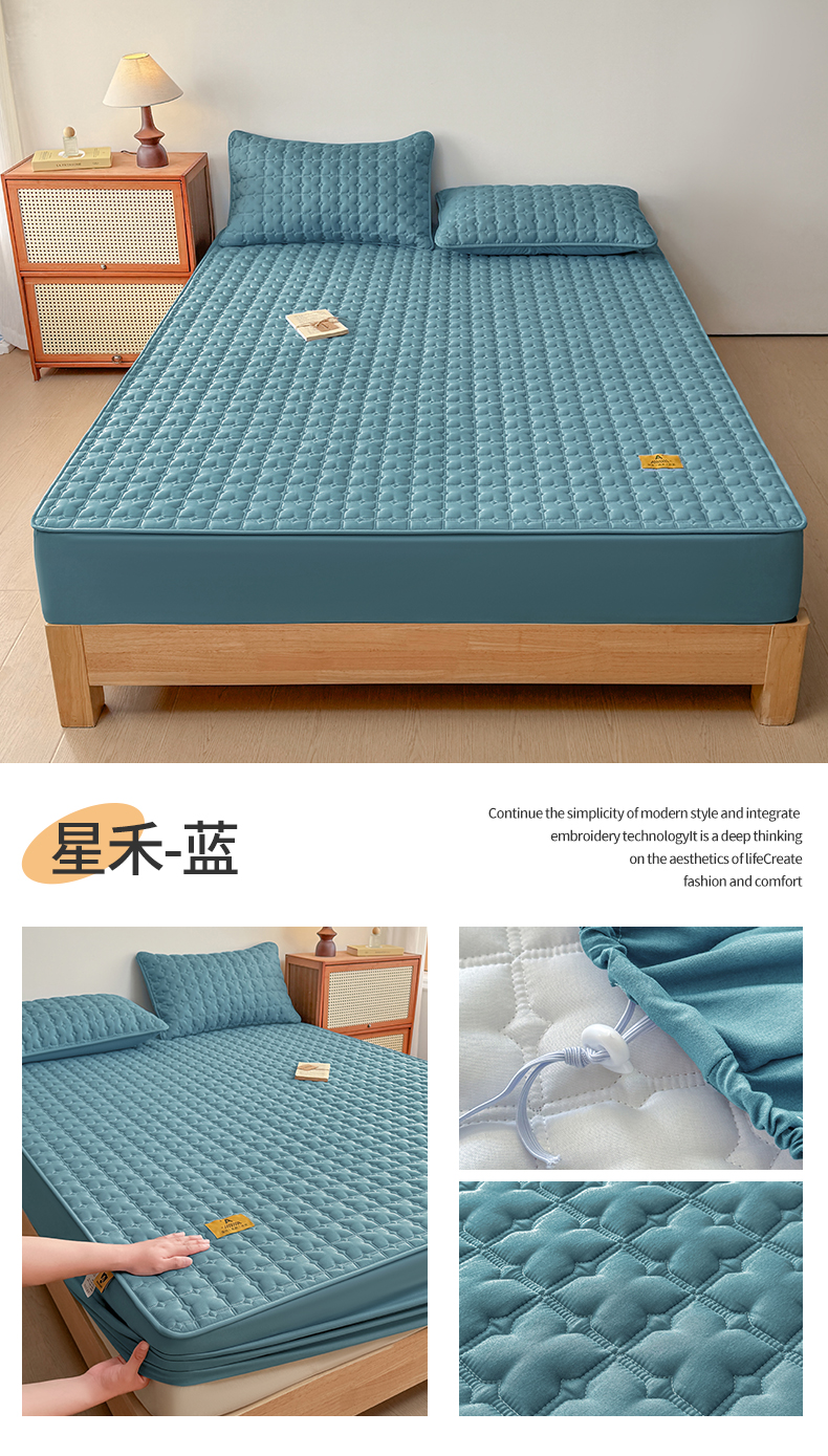 • 91家纺网 家纺一手货源 找家纺 居眠 2025新款星禾-防水夹棉棉花床笠 星禾-蓝