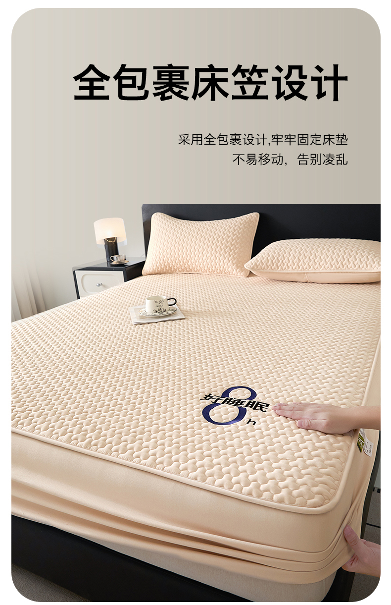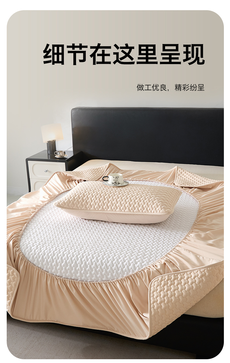 (总)居眠 2025新款防水夹棉床笠-清雅,清雅-粉色,清雅-灰色,清雅-卡其,清雅-绿色,清雅-米白,清雅-深蓝