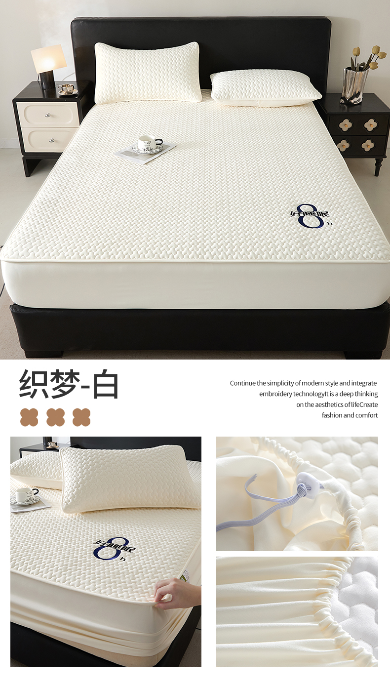 (总)居眠 2024新款水漾防水夹棉床笠床罩床垫保护套子,水漾 米白,水漾 粉色,水漾 灰色,水漾 卡其,水漾 绿色,水漾 雾蓝