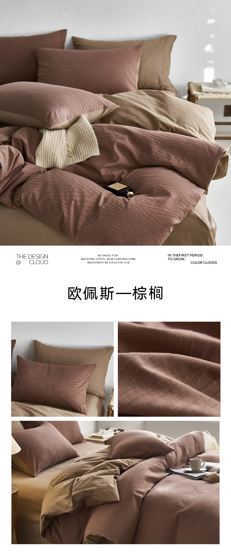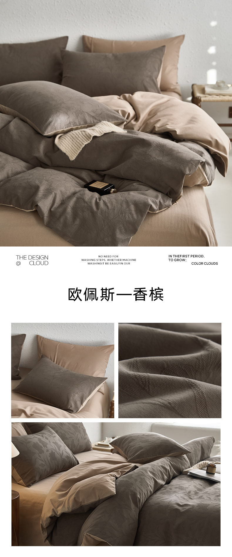 商品名称:咏绒家纺工厂店 2025新款全棉色织提花磨毛四件套 欧佩斯-松茶