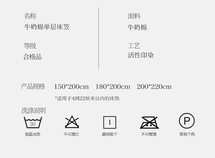 150x200cm(高度适合4-24cm内)单床笠 | ¥72.00 |