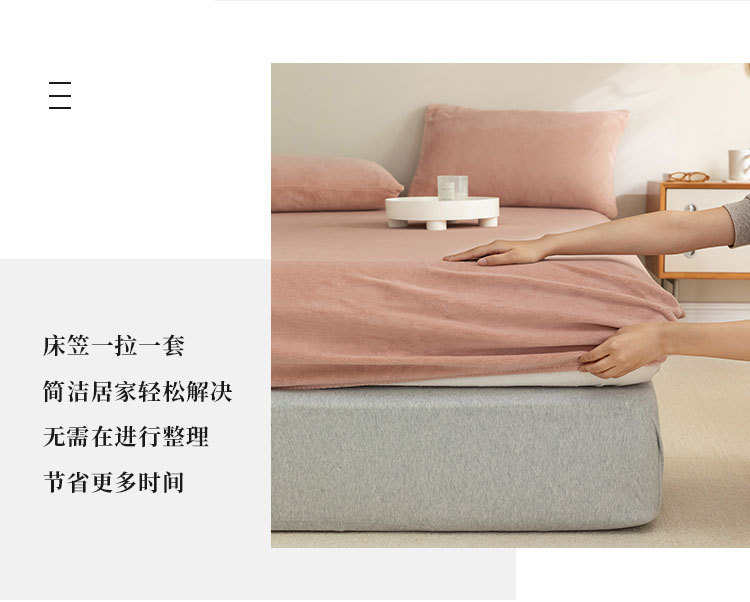 商品名称:良品汇馆 2025新款牛奶绒单品床笠单件床笠良品秋冬保暖绒布床套纯色加厚 吸湿排汗款-樱花粉