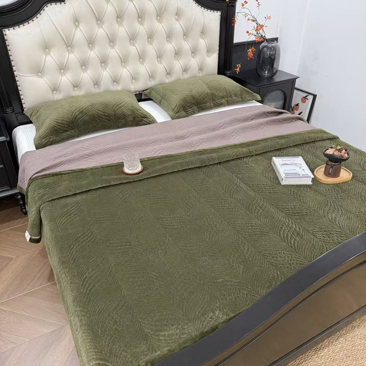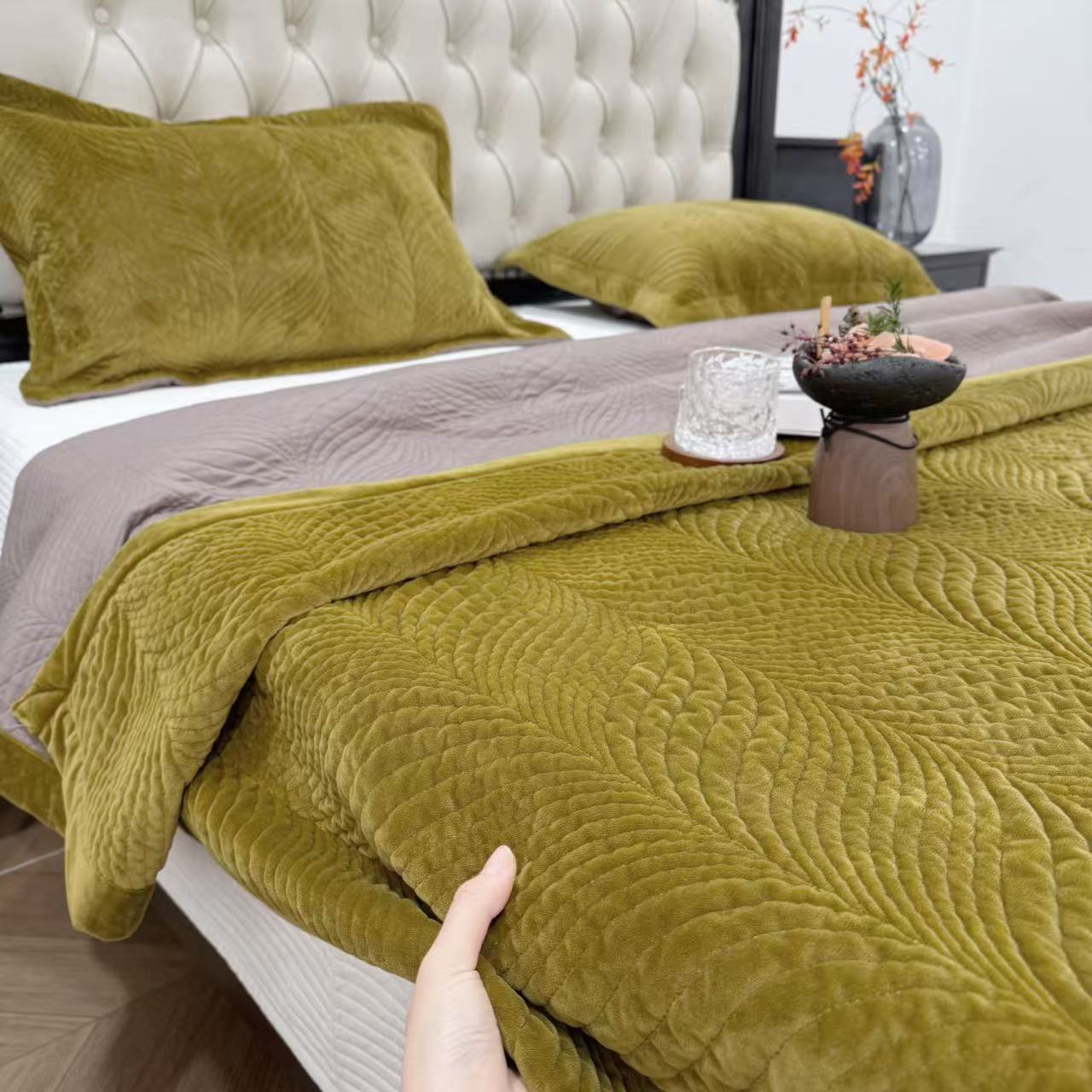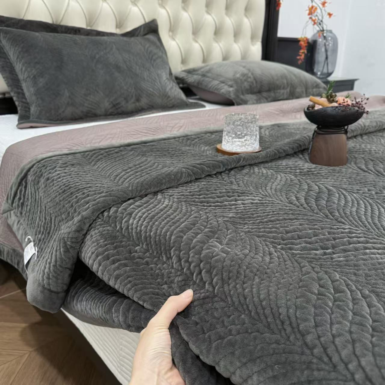 (总)床盖工厂店 2025新款婴儿绒纯色填充棉花床盖三件套,奶奶灰,熔岩橙,天空蓝,香芋紫,胭脂粉,橄榄绿,酒红,苔藓绿,波浪咖