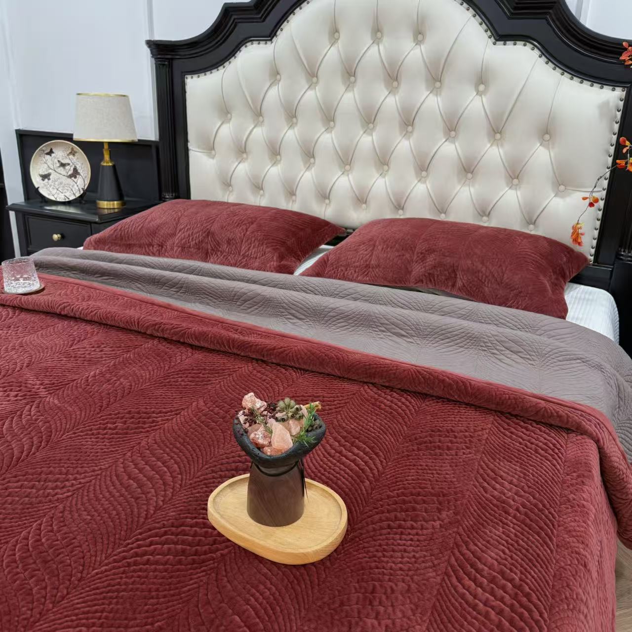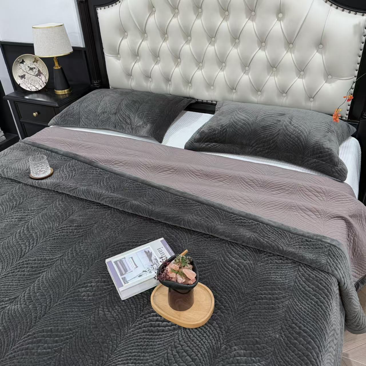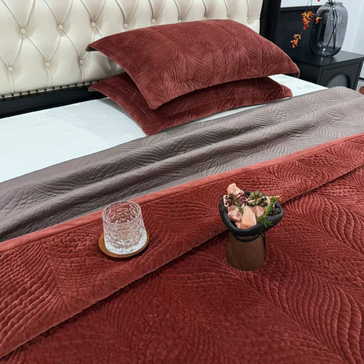 (总)床盖工厂店 2025新款婴儿绒纯色填充棉花床盖三件套,奶奶灰,熔岩橙,天空蓝,香芋紫,胭脂粉,橄榄绿,酒红,苔藓绿,波浪咖
