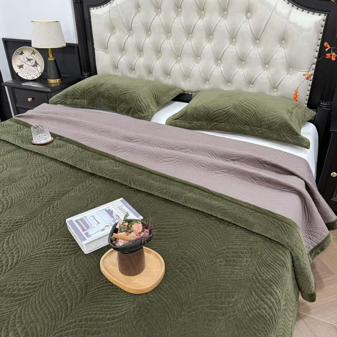 (总)床盖工厂店 2025新款宝宝绒+莱赛尔 棉花床盖三件套,深咖,安格拉红,黄绿,墨绿,奶油米白,绅士灰,深墨绿