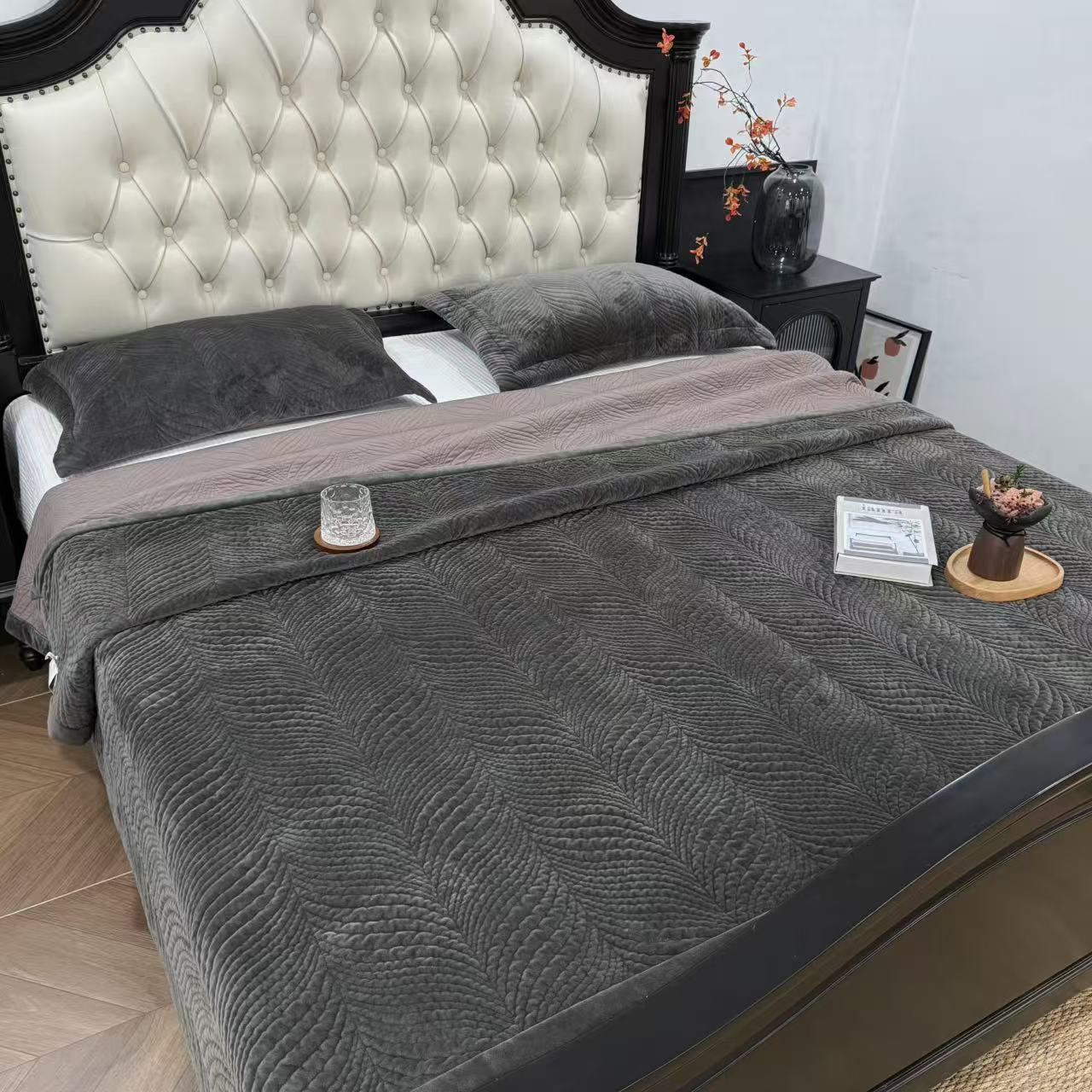 床盖工厂店 2025新款宝宝绒床盖四件套 雅韵花影,雅韵花影