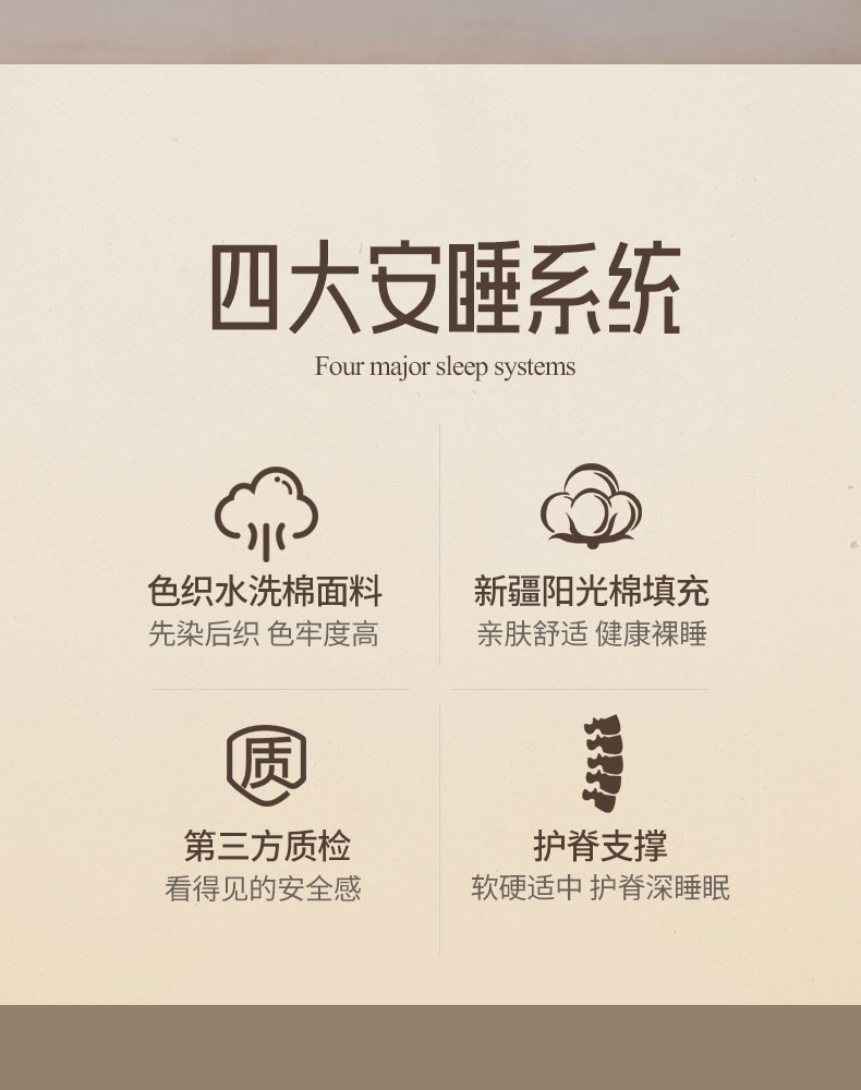 商品名称:(总)丽诺床垫 2026新款A类全棉色织水洗棉棉花三明治床垫(床垫不定制超200x220以上的尺寸)