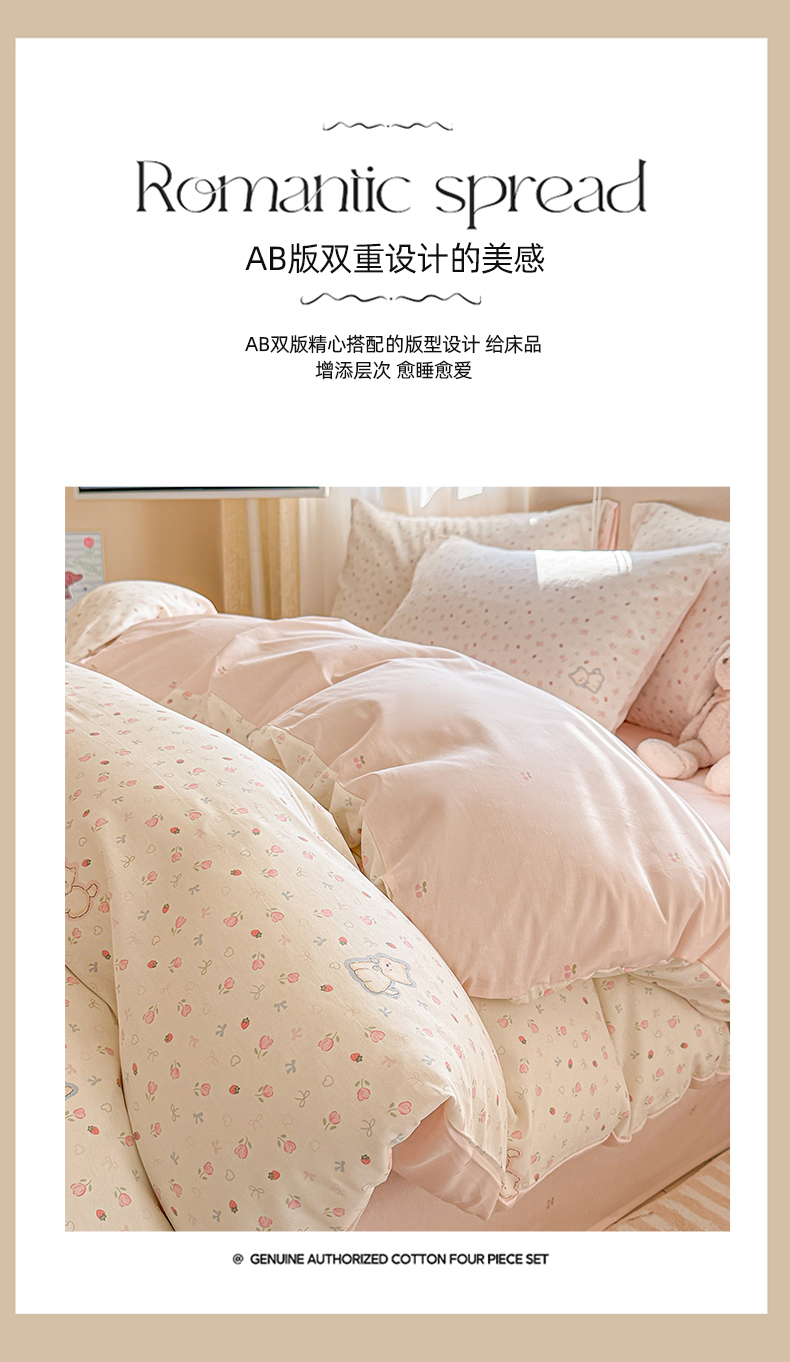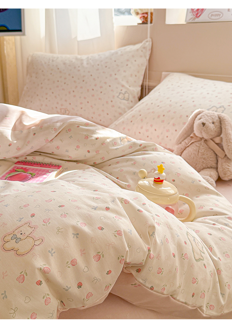 (总)曼之夏 2025新款全棉纯棉双层印花四件套,缤纷草莓,哈哈狗,花丛兔,花开半夏,花满楼,凯蒂熊仔,快乐凯蒂,快乐星球,玫瑰物语,萌萌兔,陌上花开,软萌女孩,水果派对,亭亭玉立,紫梦