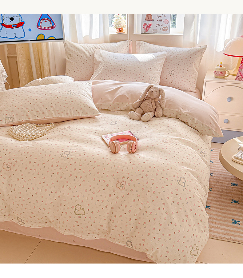 (总)曼之夏 2025新款原棉加厚磨毛印花四件套,比心,布鲁兔,春风十里,大都会,简兮,麦琪熊,麦语-灰,梦游记,眠时光,奇想,轻奢生活,塔维尔(米),甜心小熊,威斯丁,闲趣时光,意林(兰)